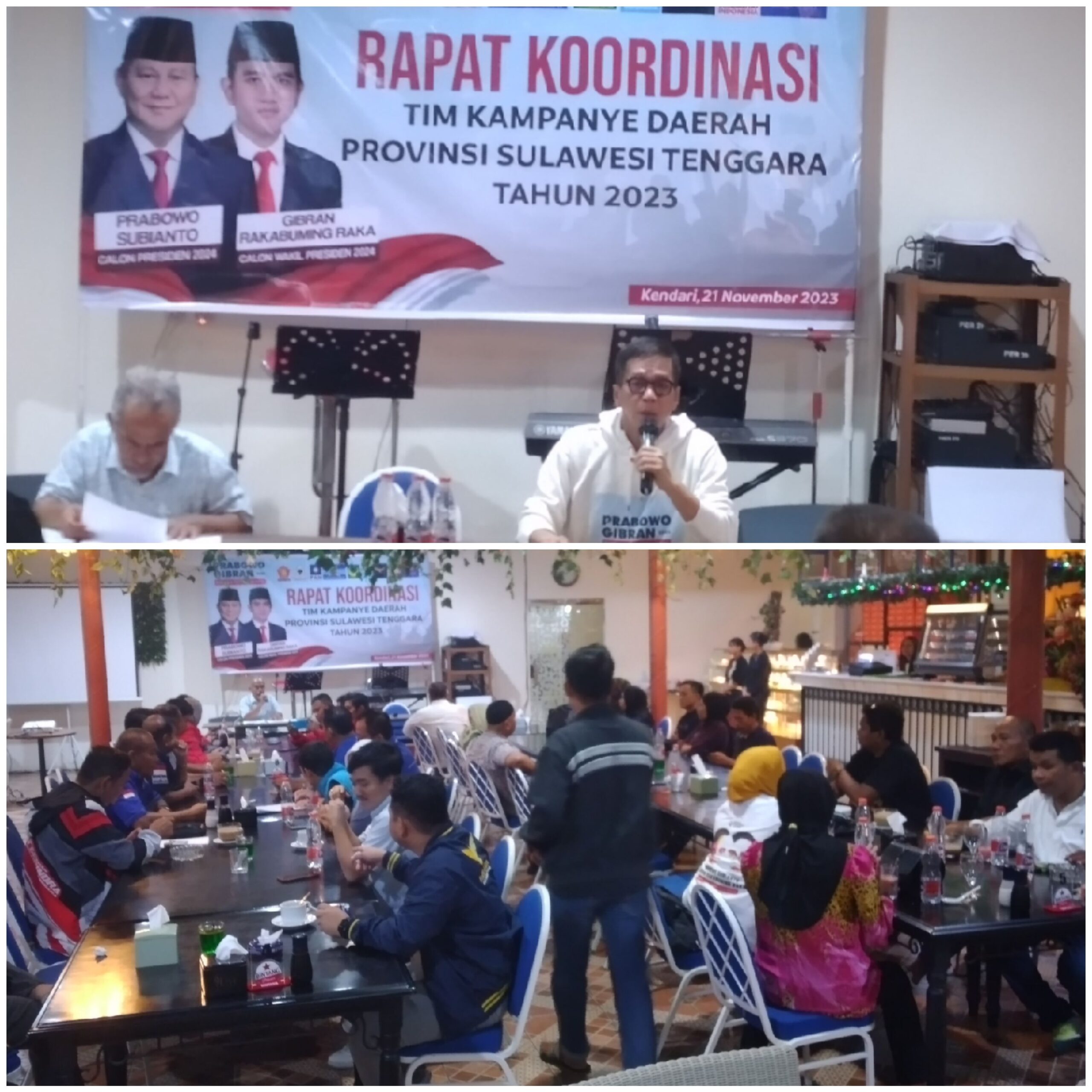 Dalam giat ini di hadiri oleh ketua tim kampanye, Baret Sultra, Relawan, beserta 9 Partai Koalisi pendukung pemenangan Prabowo-Gibran yang di gelar di Rumah Makan Pier 29 Kota Kendari.