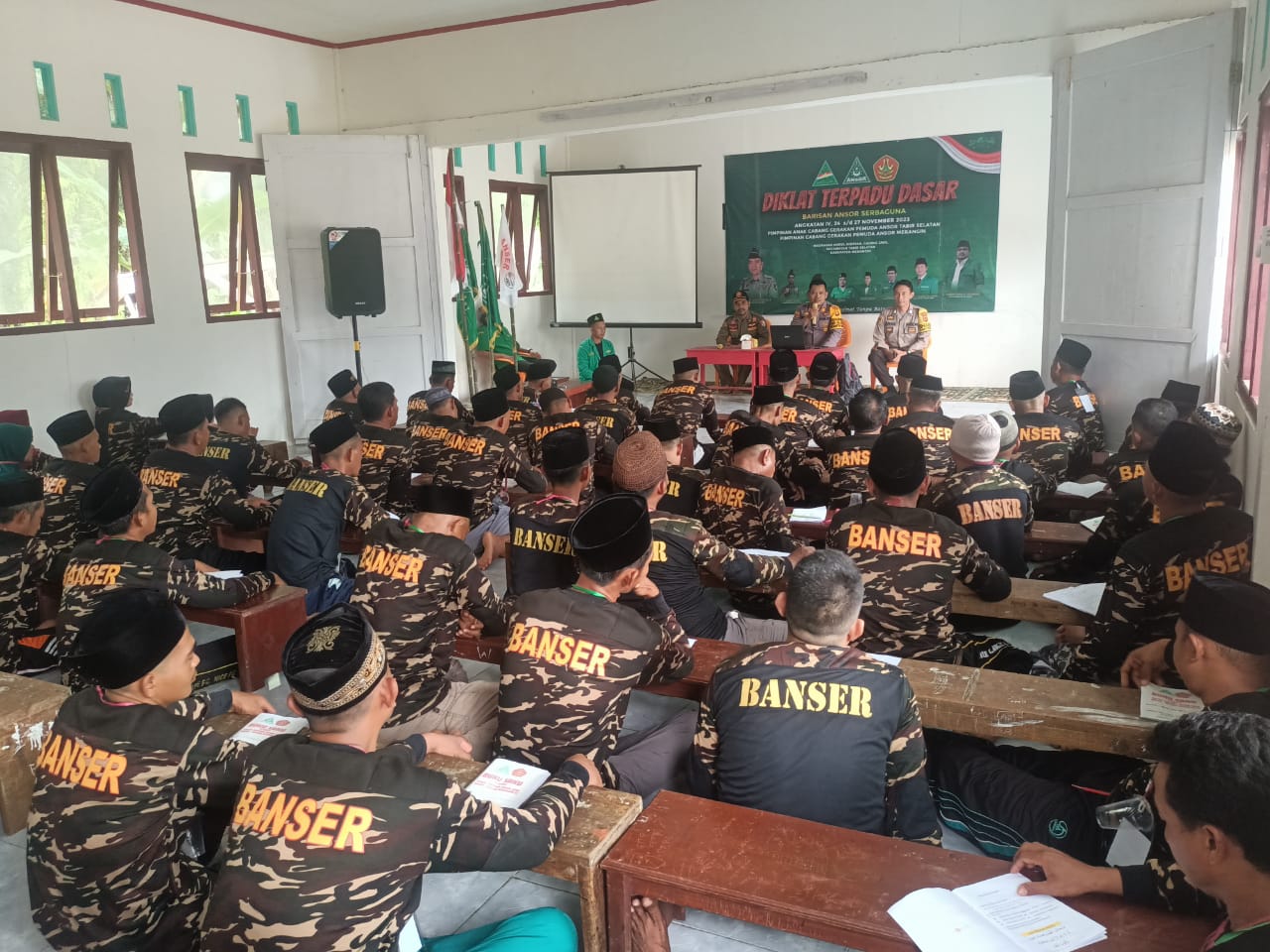 Kapolres Merangin Akbp. Ruri Roberto. SH. S.IK., M.M. M.Tr. SOU melalui Kapolsek Tabir Selatan AKP. Fatkur Rohman. SH.MH laksankan pemberian materi dalam Diklat Terpadu Dasar Barisan Ansor Serbaguna angkatan IV, Pimpinan Anak Cabang Gerakan Pemuda Ansor Tabir Selatan, Pimpinan Cabang Gerakan Pemuda Ansor Merangin di ikuti oleh 59 (lima puluh sembilan).