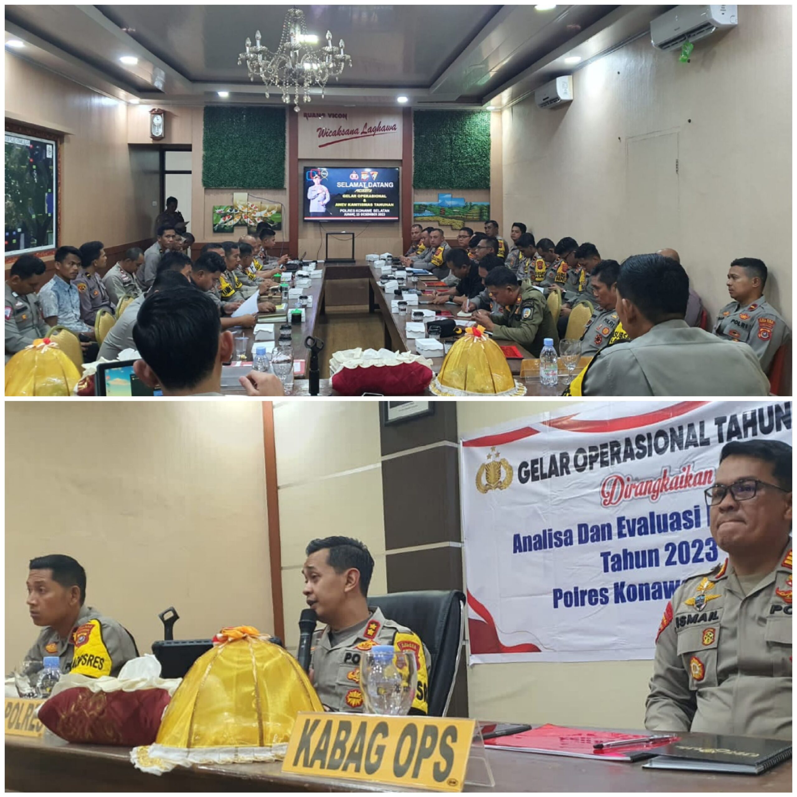 Pada gelar operasional tersebut, Kapolres Konsel AKBP Wisnu Wibowo, SH, SIK, M.Si mengatakan bahwa dengan naiknya suhu politik jelang pemilu 2024 dan untuk meminimalisir terjadinya gangguan kamtibmas Kapolres Konsel menegaskan untuk ditingkatkan kegiatan Patroli dialogis untuk mendinginkan situasi agar kamtibmas tetap terjaga.