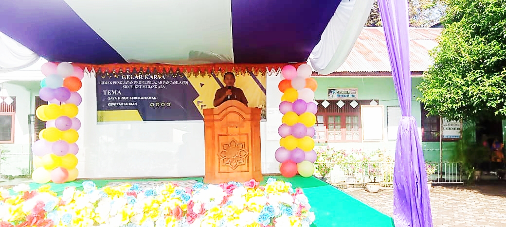 SDN Buket Medang Ara Kecamatan Langsa Timur Selenggarakan Kegiatan Pameran Gelar Karya Profil Penguatan Pelajar Pancasila (P5) merupakan kegiatan yang sangat penting dalam pelaksanaan Kurikulum Merdeka Belajar, Dengan Tema” Gaya Hidup Berkelanjutan Kewirausahaan” Acara tersebut digelar di halaman SDN Setempat, Sabtu (16/12 2023)