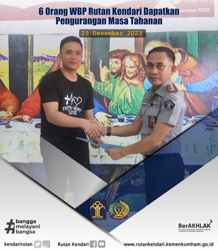 Kegiatan tersebut di akhiri dengan pembacaan SK Menteri Hukum dan HAM oleh Albert Tepu B dan pemberian SK remisi khusus Natal 2023, kepada Perwakilan WBP oleh Kepala Rutan Kendari, Provinsi Sulawesi Tenggara.