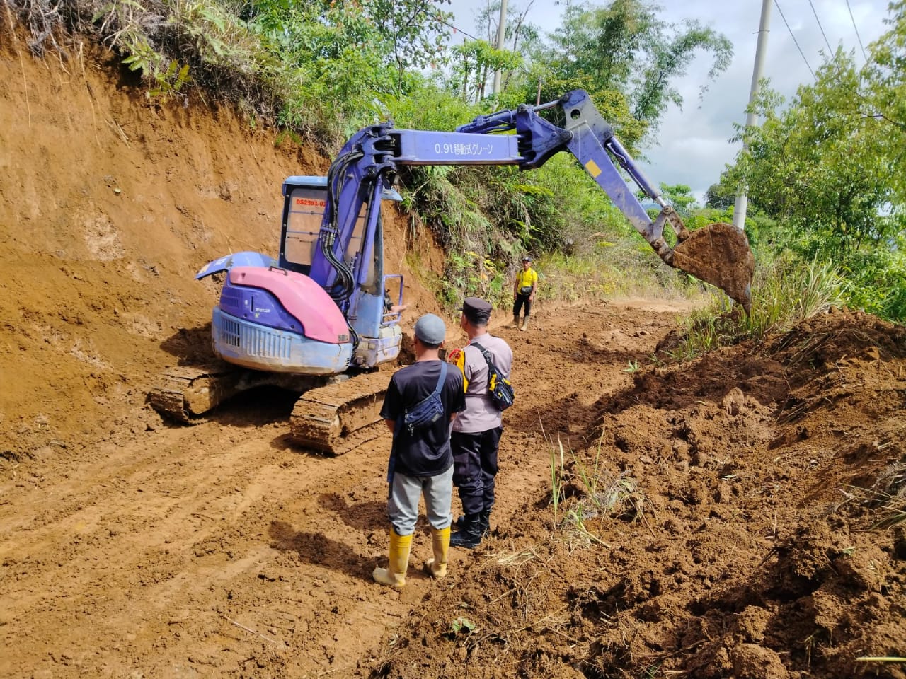 Beberapa Titik di Desa Talang Tembaga Mengalami Longsor, Personel Polsek Jangkat Bersama Warga Lakukan Pembenahan