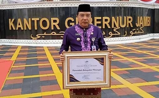 Penghargaan bergensi itu diserahkan di halaman Kantor Gubernur Jambi, disaksikan Wakil Gubernur Jambi H Abdullah Sani dan jajarannya, para bupati/walikota se-Provinsi Jambi dan seluruh peserta upacara HUT Jambi ke-67.