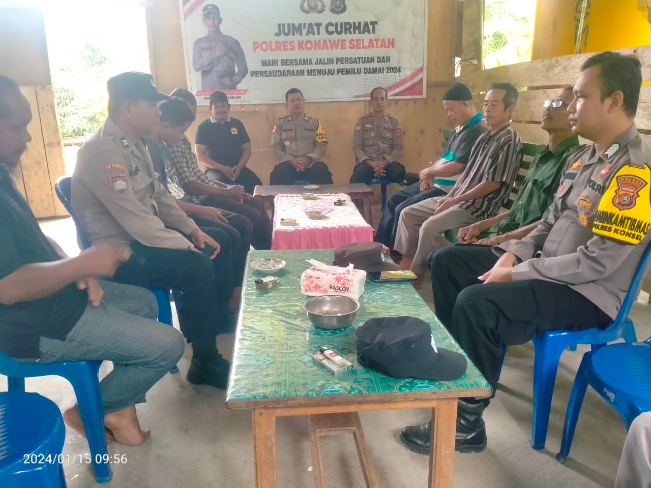 Jumat Curhat yang di gelar Dirumah Kepala Desa Ataku Kecamatan Andoolo, Kabupaten Konawe Selatan.