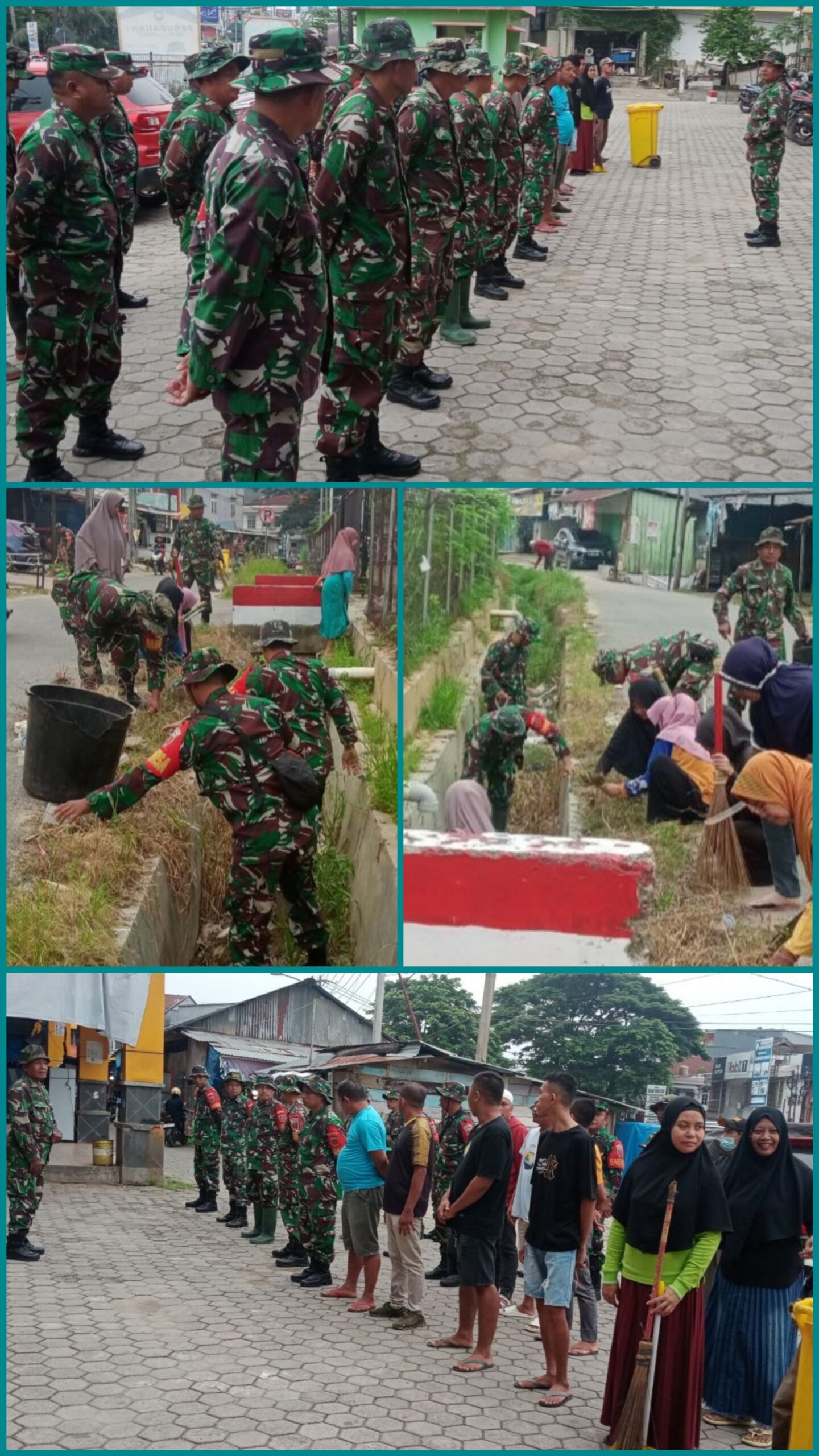 Dipimpin Wadanramil 1417-08/Mandonga, Babinsa, Bhabinkamtibmas dan Warga  Kerja Bakti di Sekitar Pasar Wua-wua Kendari.