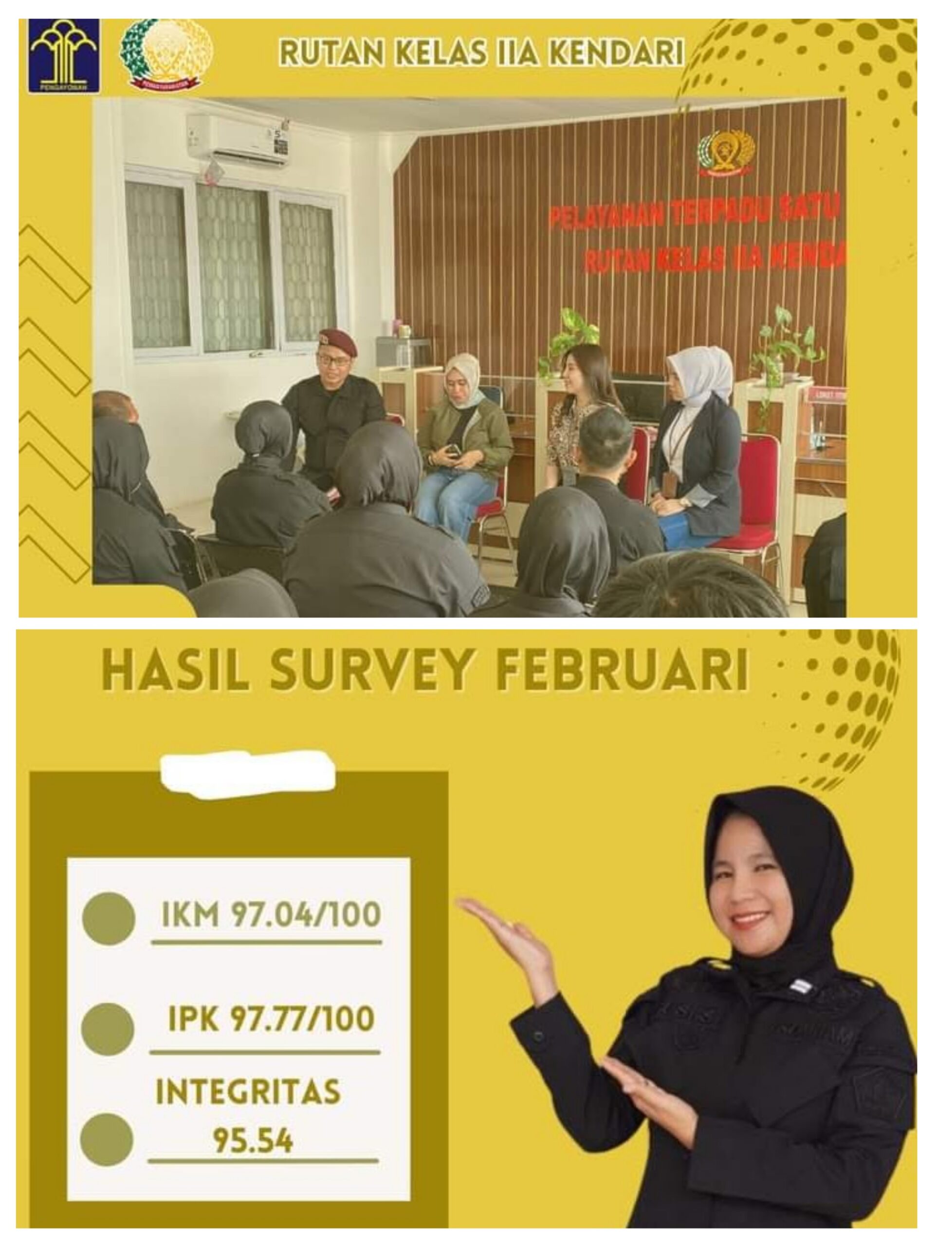 Kunjungan tersebut berlangsung di ruang pelayanan Rutan Kendari dan membahas kerjasamanya dalam mewujudkan Budaya Pelayanan Prima di Rutan Kendari, Provinsi Sulawesi Tenggara.