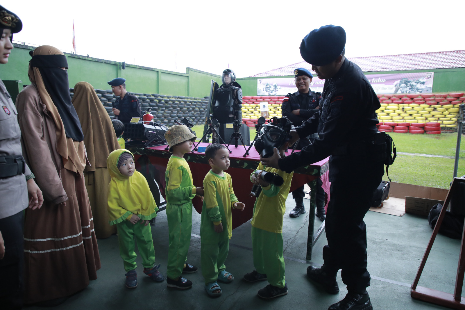 Kunjungan anak-anak TK/Playground Pesantren Anak Sholeh Indonesia di Mako Satbrimob Polda Kalbar pada hari ini dalam rangka untuk mengenal lebih dekat apa itu Brimob serta tugas Brimob dilapangan. Kegiatan kunjungan murid-murid anak-anak TK/Playground Pesantren Anak Sholeh Indonesia ini didampingi oleh Iptu Janti Nainggolan selaku yang mewakili Dansatbrimob Polda Kalbar Kbp M. Guntur, S.I.K., M.H.. Dikesempatan kunjungan ini anak-anak TK/Playground Pesantren Anak Sholeh Indonesia diberikan penjelasan tentang apa itu Brimob serta tugas dan fungsi Brimob dilapangan. Anak-anak TK/Playground Pesantren Anak Sholeh Indonesia juga mendapat kesempatan untuk melihat secara langsung almatsus yang sering digunakan oleh personel Satbrimob Polda Kalbar pada saat bertugas dilapangan serta diberi kesempatan untuk menggunakan almatsus tersebut. Iptu Janti Nainggolan juga mengatakan bahwa kunjungan anak-anak TK/Playground Pesantren Anak Sholeh Indonesia ke Mako Satbrimob Polda Kalbar adalah sebagai bentuk upaya untuk memperkenalkan lebih dekat tentang fungsi dan peran Brimob kepada mereka.