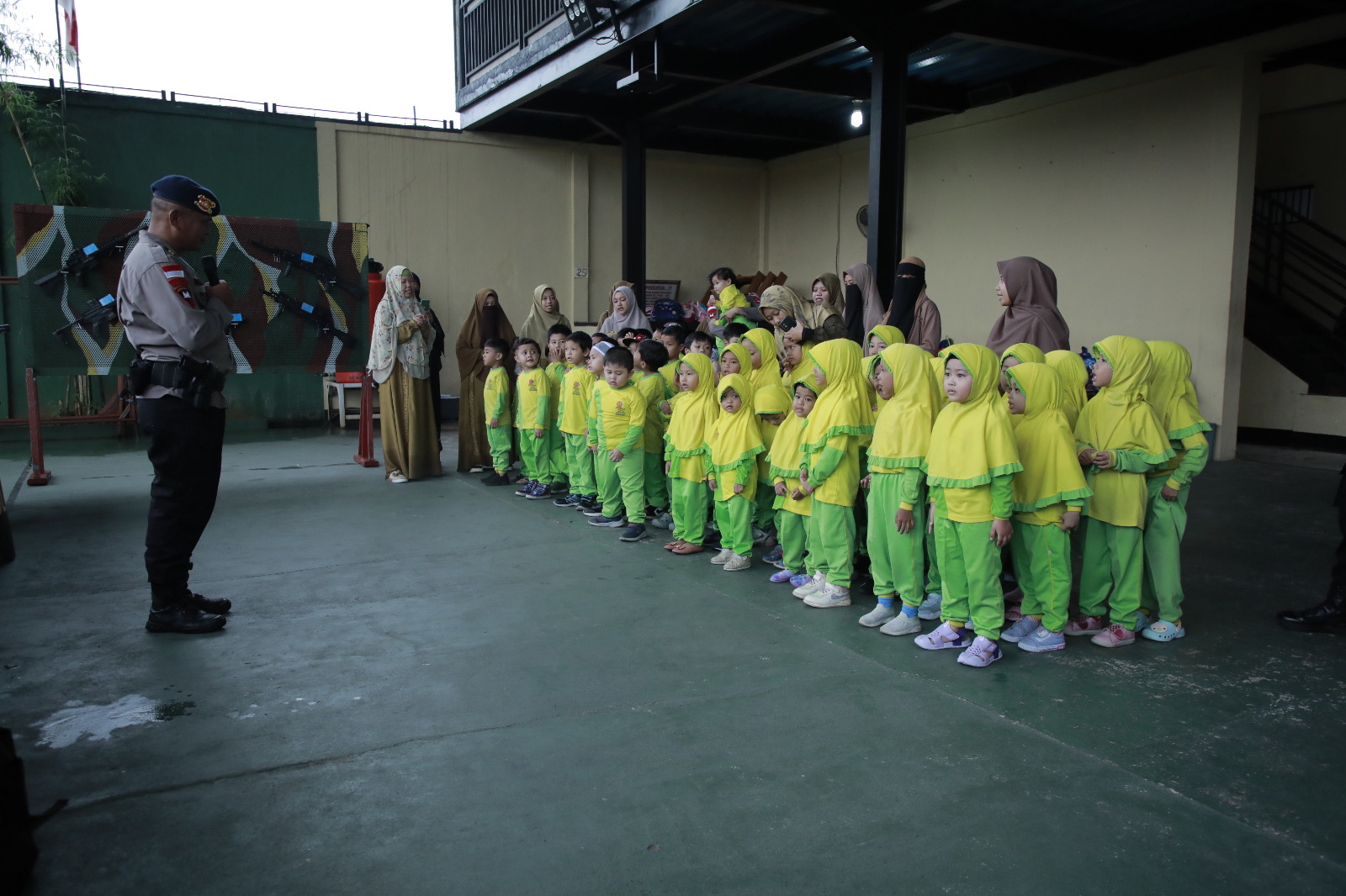 Satbrimob Polda Kalbar kembali menerima kunjungan dari salah satu TK (Taman Kanak-Kanak) yang ada di Provinsi Kalbar. Kali ini yang mengunjungi Mako Satbrimob Polda Kalbar adalah TK/Playground Pesantren Anak Sholeh Indonesia.