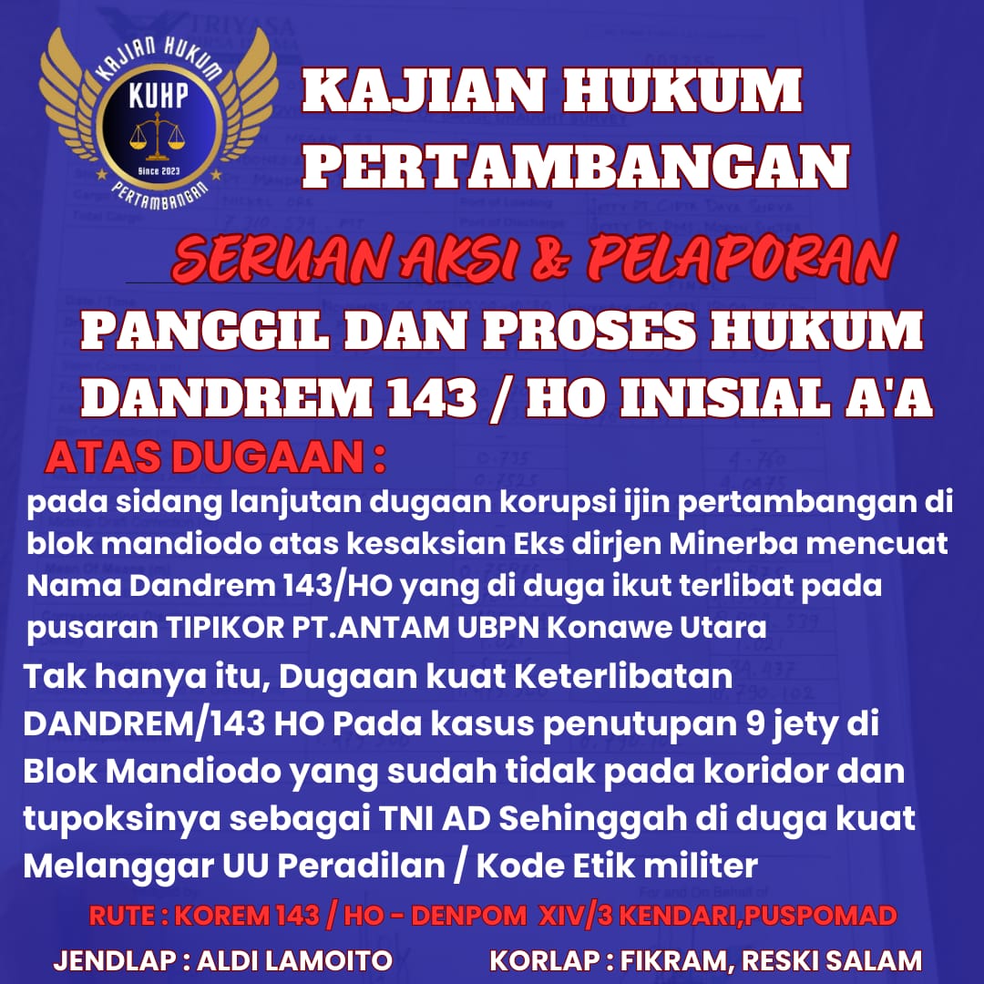 Ditegaskanya bahwa, terkait adanya Pamplet Aksi Unras dirinya pun siap menemui pendemo guna mengklarifikasi dan kebenaran terkait hal tersebut di Markas Korem 143/HO Kendari, tepatnya di Jalan. H Abdul Silondae, Kecamatan Mandonga, Kota Kendari, Provinsi Sulawesi Tenggara. Senin (11/03/24)