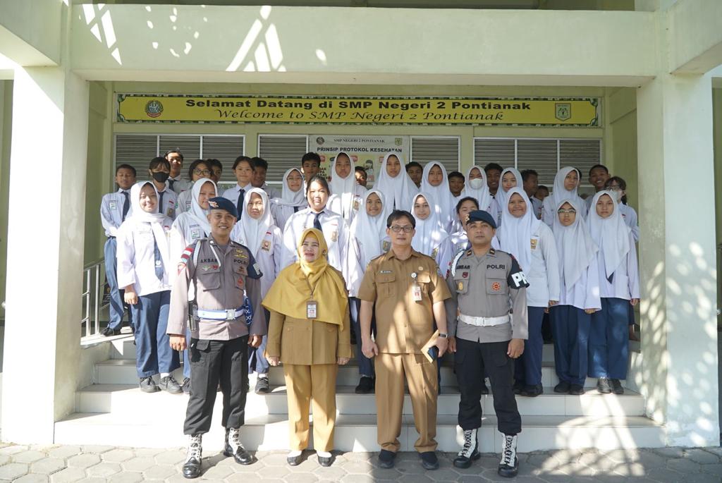 Demi menciptakan generasi penerus bangsa yang mengerti akan makna Pacasila Satbrimob Polda Kalbar kembali melaksanakan kegiatan Brimob Go To School di SMPN 2 Pontianak yang berada di Jl. Selayar, Kec. Pontianak Selatan, Kota Pontianak. Dikegiatan Brimob Go To School hari ini personel Satbrimob Polda Kalbar mengajarkan nilai-nilai Pancasila kepada para murid dimana Pancasila memang penting untuk diperkenalkan kepada anak-anak sejak dini dengan tujuan agar mereka dewasa nanti mereka sudah terbiasa dengan perbuatan dan tingkah laku yang sesuai dengan nilai-nilai Pancasila. Dikegiatan Brimob Go To School hari ini personel Satbrimob Polda Kalbar juga menjelaskan makna-makna yang terkandung ditiap-tiap sila seperti pada sila pertama berupa cinta kasih, menjaga toleransi dan saling menghormati perbedaan kepercayaan. Kemudian sila kedua yaitu setara atau memperlakukan orang lain atau sesama dengan adil dan manusiawi. Sila ketiga yaitu harmoni atau mengutamakan kepentingan Indonesia diatas kepentingan pribadi maupun kelompok. Sila keempat yaitu demokratis atau memberikan kesempatan kepada setiap orang untuk bebas berekspresi serta berpendapat kemudian yang terakhir sila kelima yang mengajarkan kita tentang gotong royong. Selain mengedukasi kepada para siswa tentang makna Pancasila dikegiatan Brimob Go To School kali ini personel juga memberikan edukasi kepada para murid tentang kenakalan remaja yang belakangan ini banyak terjadi dilingkungan sekolah.