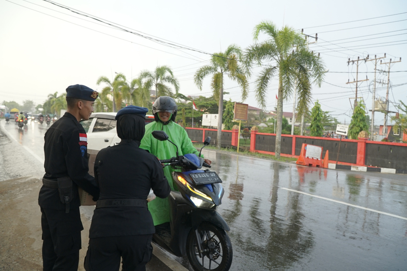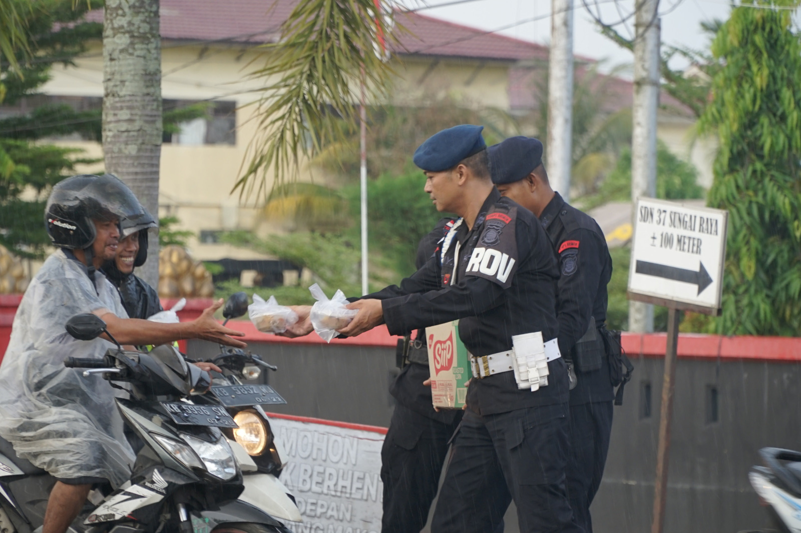 Satbrimob Polda Kalbar kembali melaksanakan kegiatan Jum’at Berkah bagi-bagi takjil dengan sasaran masyarakat pengguna jalan yang melintas didepan Mako Satbrimob Polda Kalbar. Kegiatan berbagi takjil ini merupakan salah satu program dari Dansatbrimob Polda Kalbar Kbp M. Guntur, S.I.K., M.H. dibulan Ramadhan dengan harapan bisa sedikit membantu masyarakat pengguna jalan yang untuk mendapatkan hidangan berbuka. Kegiatan bagi-bagi takjil ini juga merupakan salah satu cara bersyukur personel Satbrimob Polda Kalbar atas apa yang telah diberikan Allah Subhanahu Wata’ala Tuhan Yang Maha Esa kepada mereka selama ini sehingga sampai saat ini.