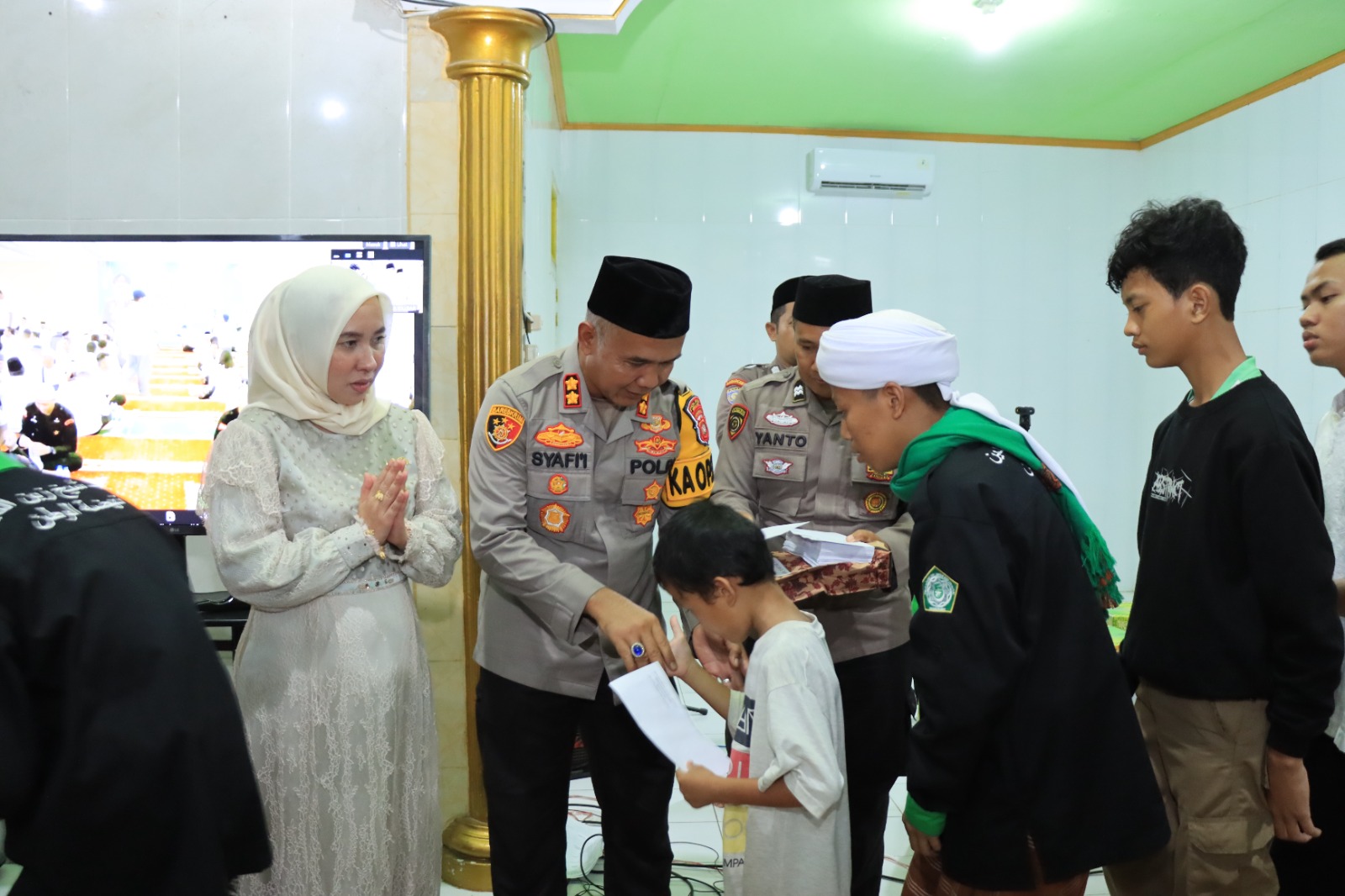 “Wujud rasa syukur, kami menyantuni anak yatim dan piatu, semoga dengan santunan ini kita semua selalu mendapatkan keberkahan di bulan Ramadhan,” terang AKBP Syafi’i.