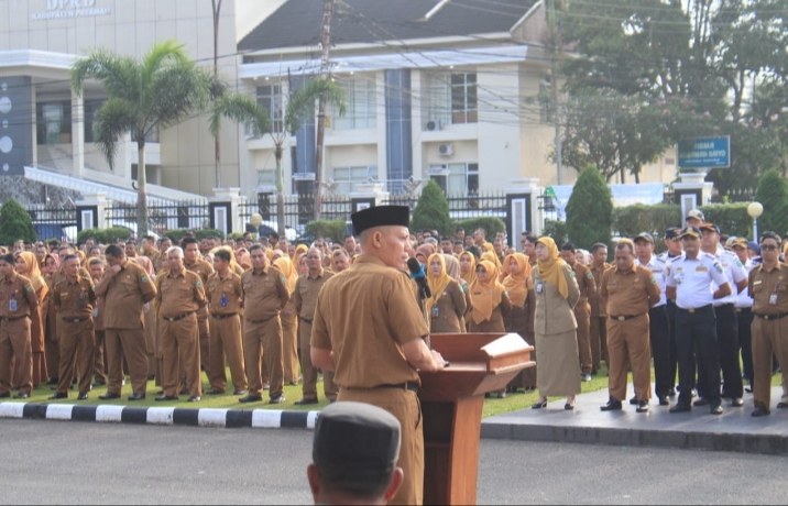 Bupati menyampaikan Ucapan Selamat Idul fitri kepada seluruh ASN dan non ASN pada apel organik, senin 15 April 2024.