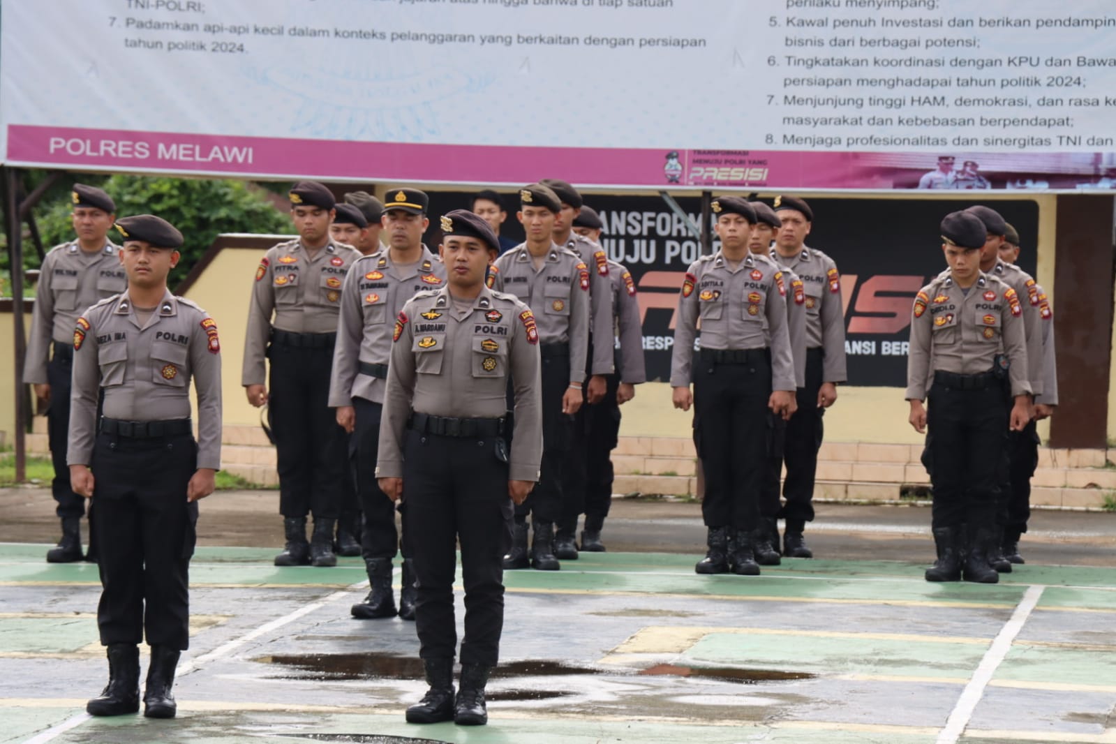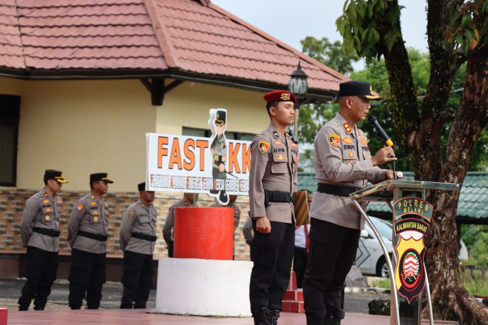Kapolres Melawi mengajak seluruh personel yang mengikuti upacara agar selalu berusaha memberikan yang terbaik untuk bangsa Indonesia melalui pengabdian sebagai anggota Polri.Diakhir sambutannya Kapolres Melawi mengajak seluruh personel agar berhati hati dalam tugas, terus belajar dengan selalu berusaha menjadi lebih baik.