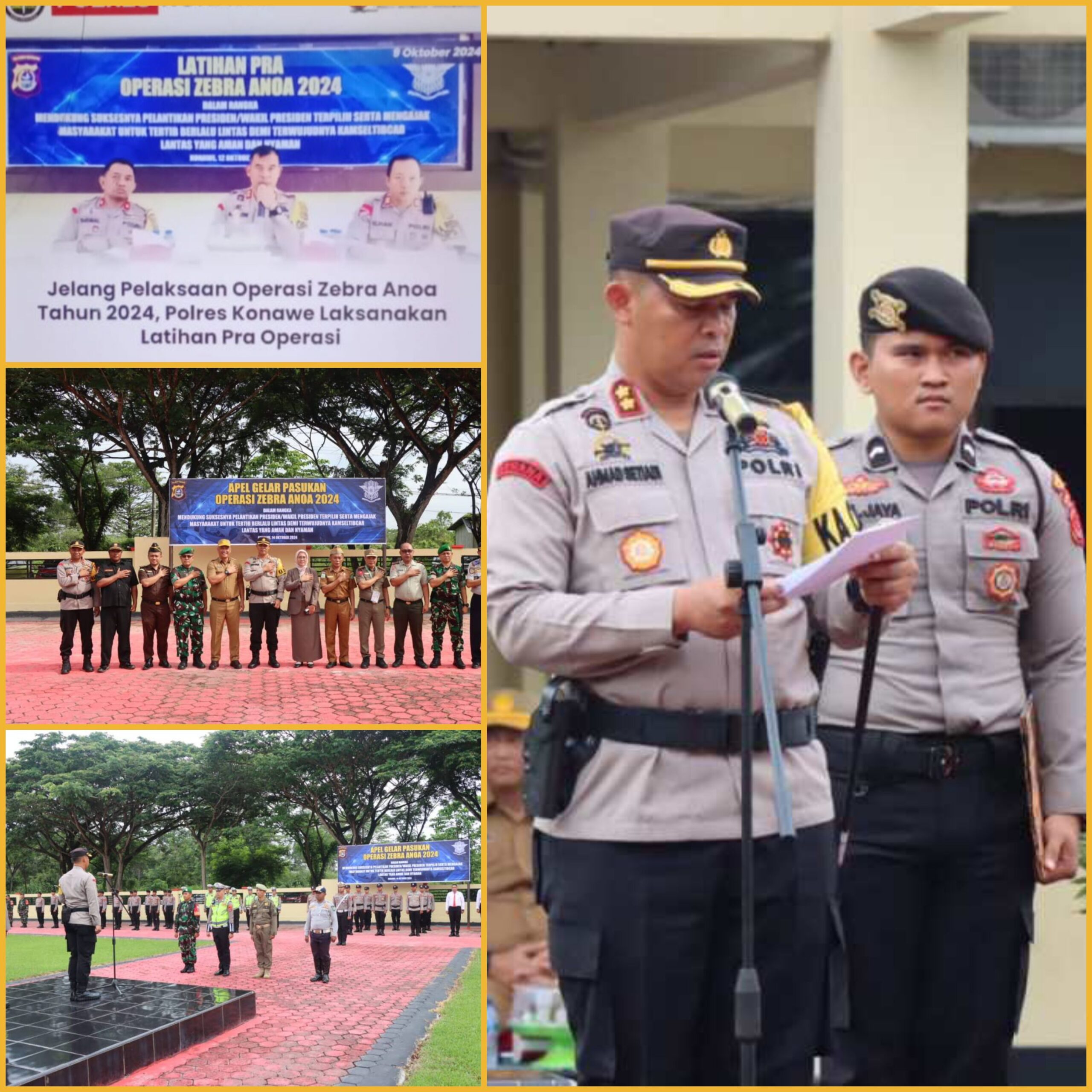 Kapolres Konawe dalam sambutan tertulisnya menyampaikan bahwa, pelaksanaan Operasi Kepolisian Kewilayahan dengan Sandi “Zebra Anoa tahun 2024“ dalam rangka mendukung suksesnya pelantikan Presiden dan Wakil Presiden terpilih serta mengajak masyarakat untuk tertib berlalu lintas demi terwujudnya kamseltibcar lantas yang aman dan nyaman,”katanya.