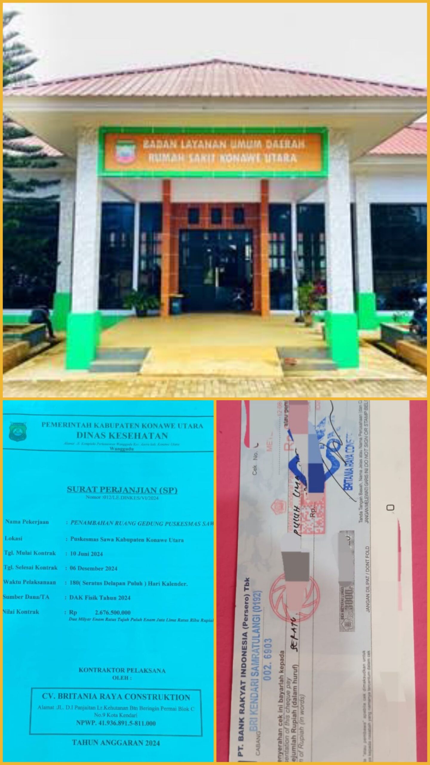 Sejumlah dana tersebut, diduga adalah suap untuk memuluskan agar proyek penambahan ruang gedung puskesmas dengan pagu anggaran sebesar Rp. 2.754.984.309,00 Tahun 2024 dimenangkan oleh CV. Britania Jaya Construktion.