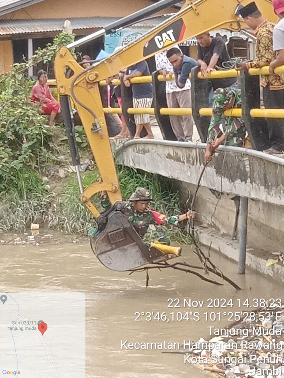 Jelitapos.com.Kodim 0417/Kerinci Melalui Koramil 06/Spn dipimpin Danramil 07/Spn Kodim 0417/Kerinci Kapten Inf Nasrul beserta anggota bersama Dinas Lingkungan Hidup, PUPR Kota Sungai Penuh,perangkat Kecamatan,Kelurahan dan elemen masyarakat wilayah binaan melaksanakan Gotong Royong Masal di Desa Tanjung Muda Kecamatan Hamparan Rawang Kota Sungai Penuh.Jumat , (22/11/2024).