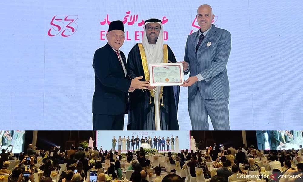 Jelitapos.com – Jakarta – Kedutaan Besar Uni Emirat Arab (UEA) di Jakarta menyelenggakan resepsi perayaan Hari Nasional ke-53 negara tersebut, Selasa malam, 3 Desember 2024, bertempat di Dian Ballroom, Hotel Raffles, di Kawasan Mega Kuningan, Jakarta. Sebagai salah satu negara terkaya di dunia, penyelenggaraan perayaan tersebut tergolong sangat mewah dalam suasana penuh kebanggaan dengan kehadiran sejumlah tokoh elit nasional dan internasional.