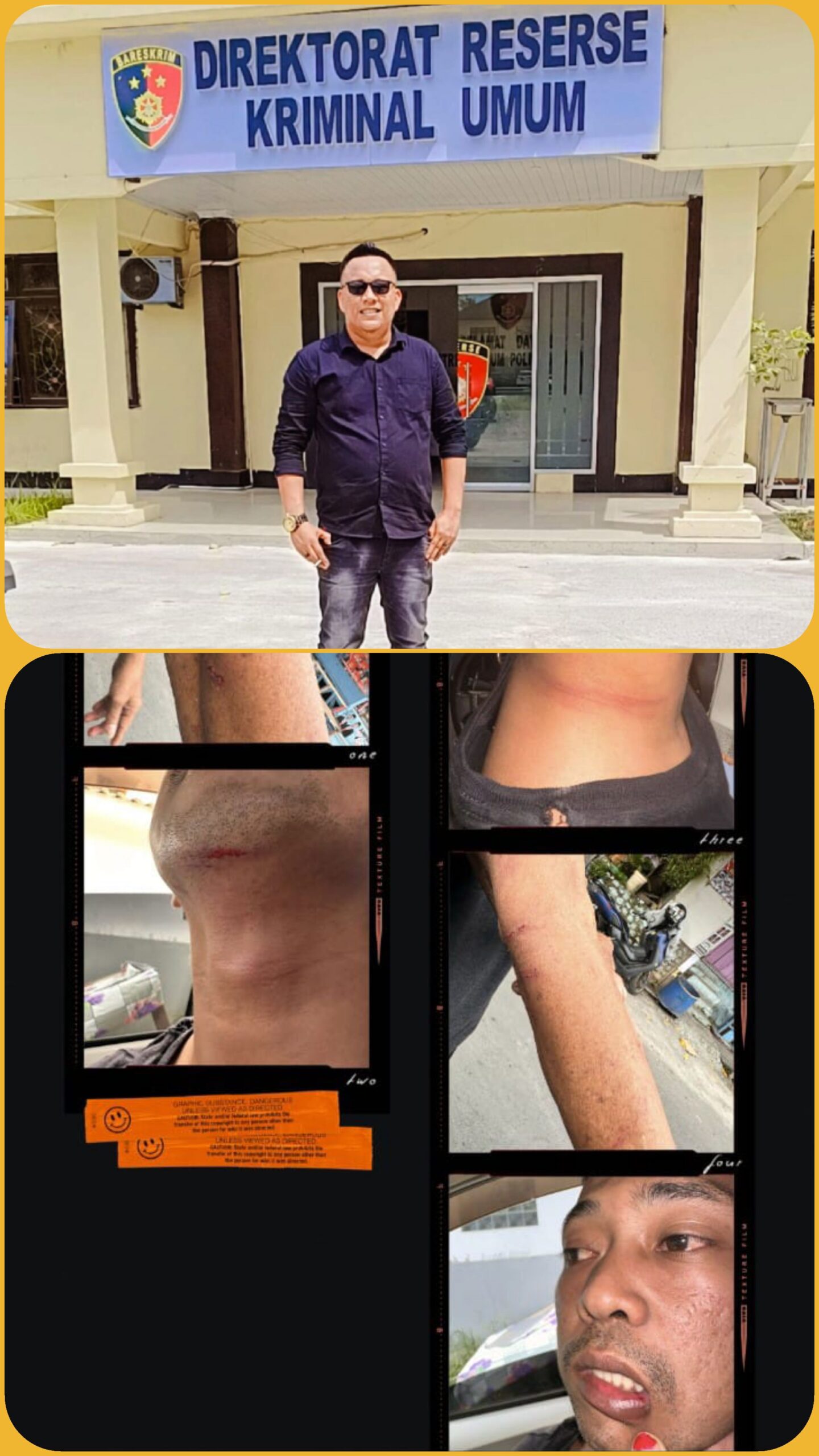 Selanjutnya, sempat cekcok mulut dan akhirnya kedua oknum polisi bersaudara itu langsung bertindak anarkis menganiaya korban hingga luka dan disaksikan oleh keluarganya, lebih naas lagi. Aksi anarkis dua oknum polisi tersebut, sempat direkam oleh keluarga korban yang berada di dalam mobil itu dan oknum Polisi teriak mengatakan jangan di video, sambil kedua oknum polisi tersebut langsung menganiaya seluruh keluarga korban dan sambil mengancam dengan mengunakan senpi milik oknum polisi tersebut,” ungkap korban dan keluarga.