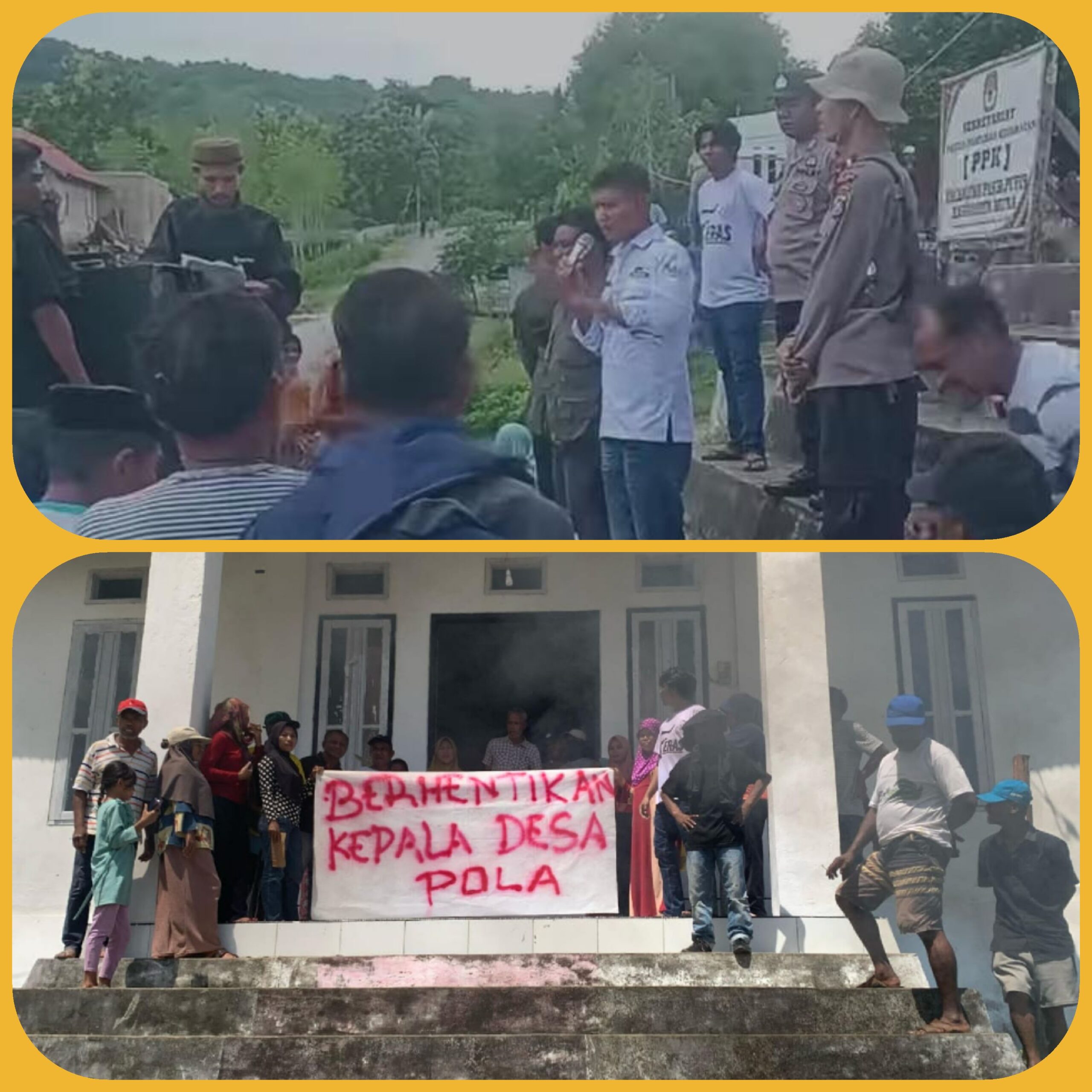 Aksi tersebut dilakukan sebagai bentuk kekecewaan masyarakat terhadap kinerja Kades, dan warga menduga Kades Pola menyelewengkan Dana Desa (DD) dan Angaran Dana Desa (ADD) yang dilakukan oleh oknum Kepala Desa Pola.