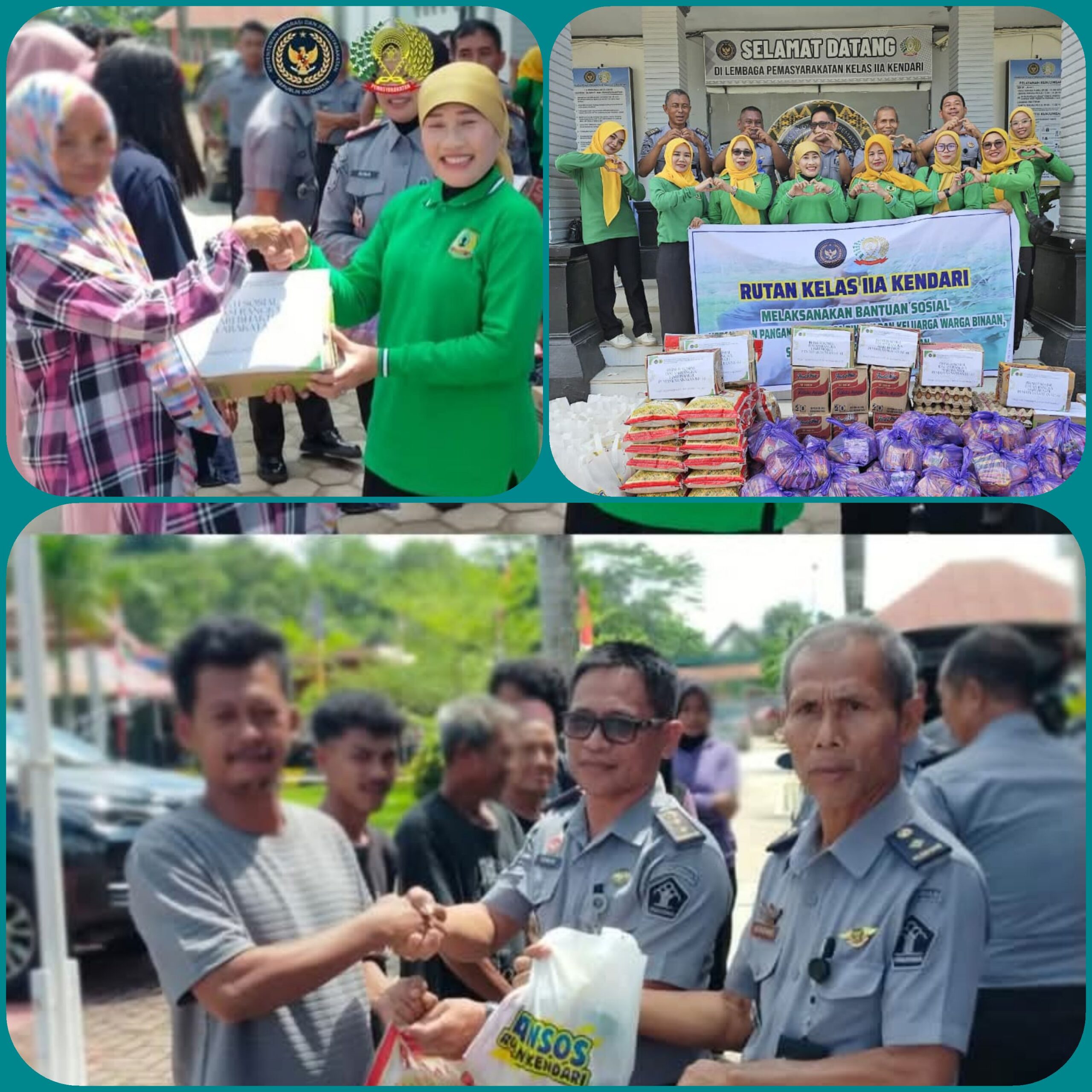 Seusai sambutannya, Kakanwil Ditjen PAS Sulawesi Tenggara, Ketua PIPAS dan Ka UPT Pemasyarakatan dalam Kota Kendari, menyerahkan bantuan sosial kepeda warga yang membutuhkan di sekitar Lapas Kelas IIA Kendari.