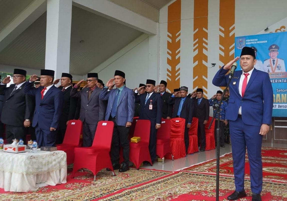 Hadir juga pada upacara yang diikuti barisan Korpri, Personil Polres Merangin, TNI, Batalyon B Pelopor SatBrimob,