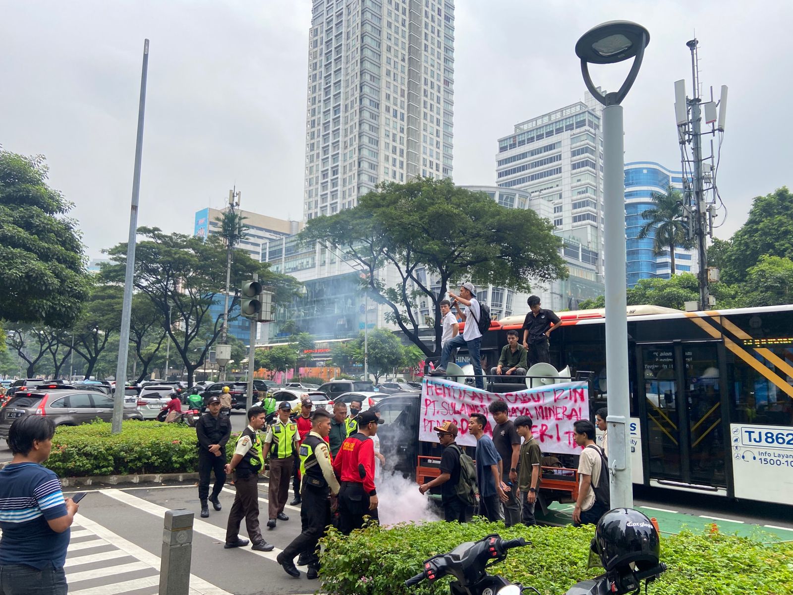 Akibat demonstrasi tersebut, akses kendaraan dari kawasan SCBD menuju Jalan Jenderal Sudirman sempat ditutup oleh massa aksi. Aparat kepolisian terlihat bersiaga untuk mengamankan jalannya aksi.