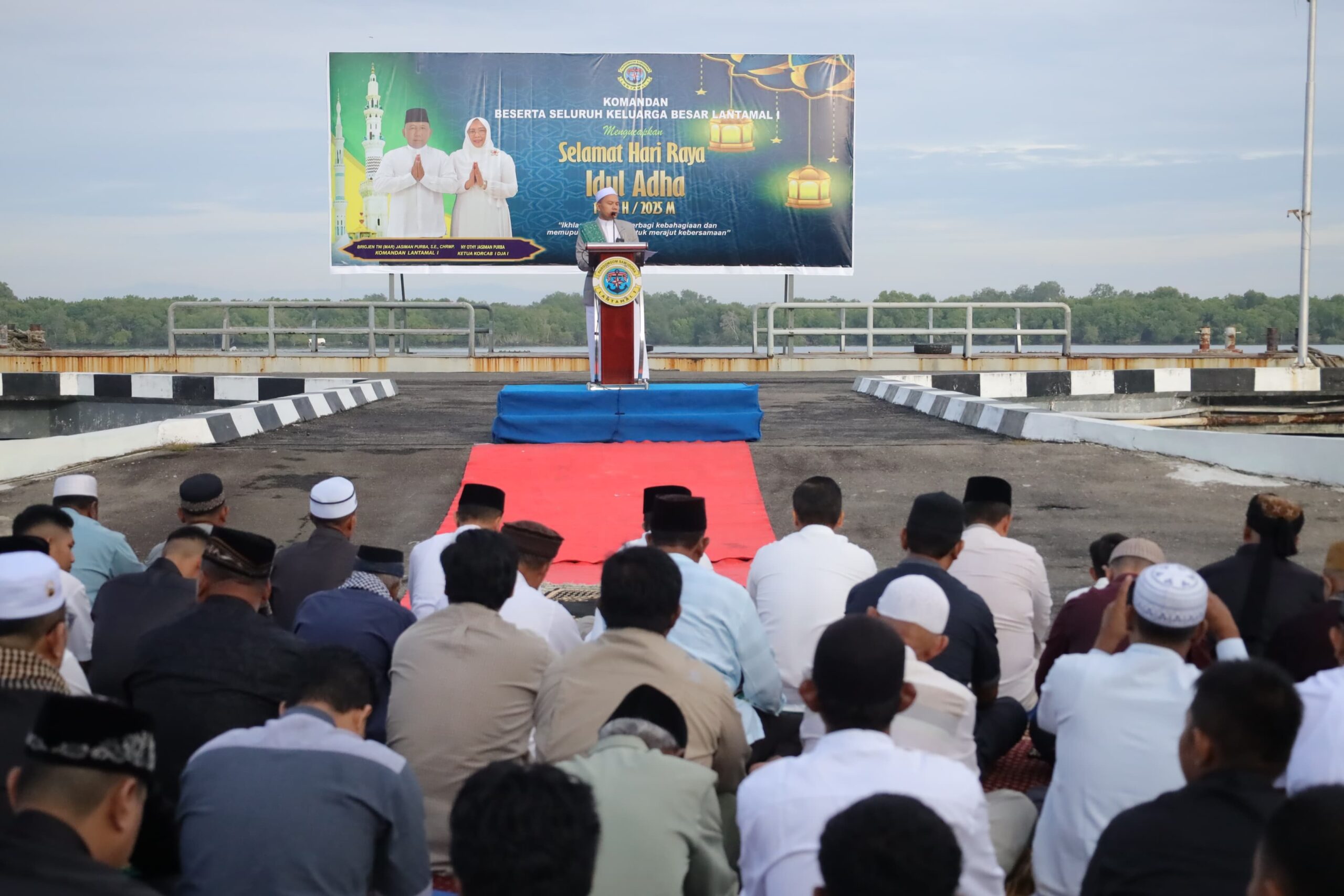 Jelitapos.com Belawan — Prajurit dan Aparatur Sipil Negara (ASN) Lantamal I bersama masyarakat sekitar Lingkungan Mako Lantamal I melaksanakan Sholat Idul Adha 1446 H/2025 M, bertempat di Lapangan Apel Mako Lantamal I, Jalan Serma Hanafiah No. 01 Belawan, Sumatera Utara, Jumat (06/06/2025).