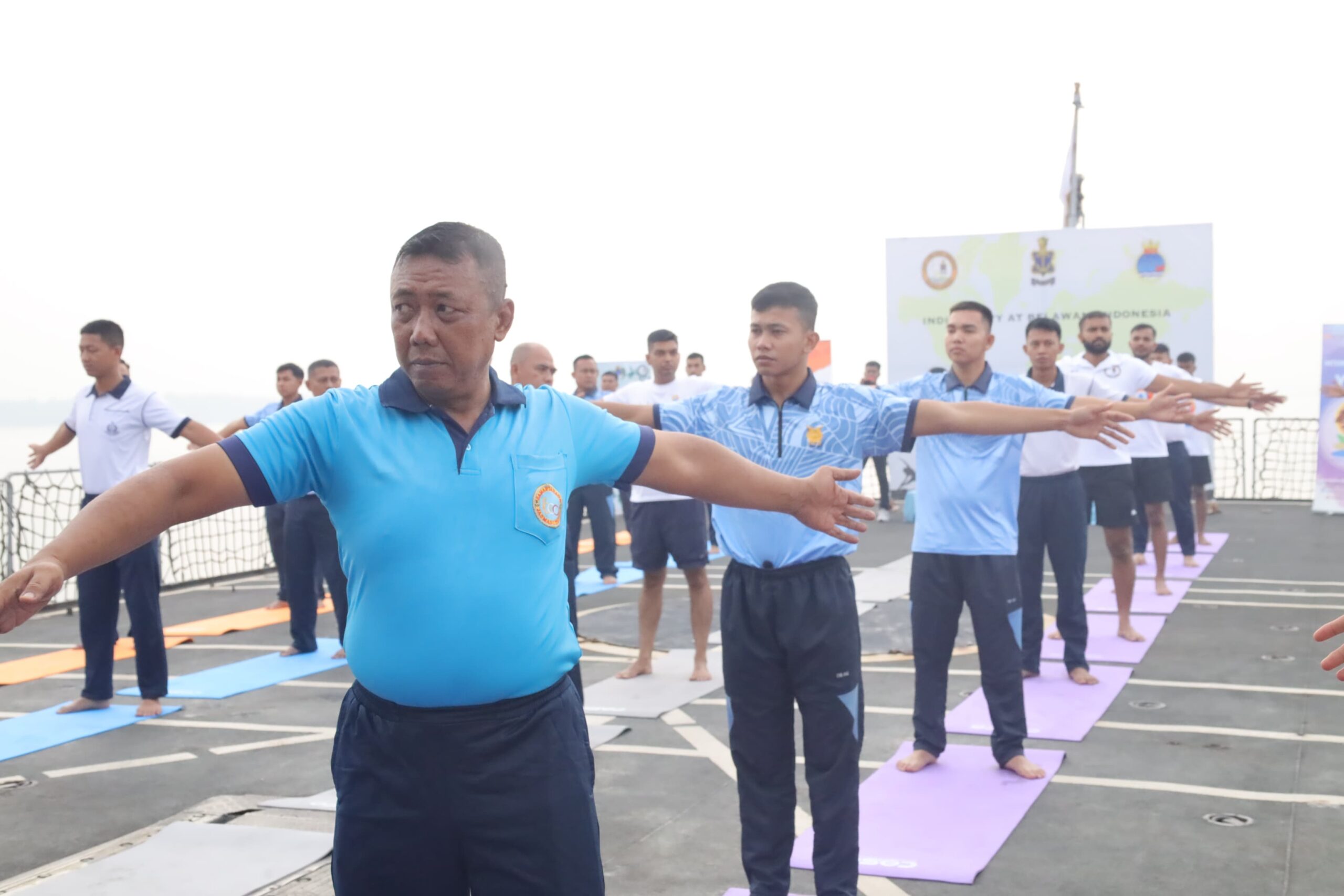 Jelitapos.com Belawan — Personel Pangkalan Utama TNI Angkatan Laut I (Lantamal I) melaksanakan olahraga bersama Senam Yoga dengan ABK Kapal Perang India INS Saryu P54, bertempat di Deck Kapal dan Dermaga Pelindo 104 Belawan, Sumatera Utara, Sabtu (21/6/2025).