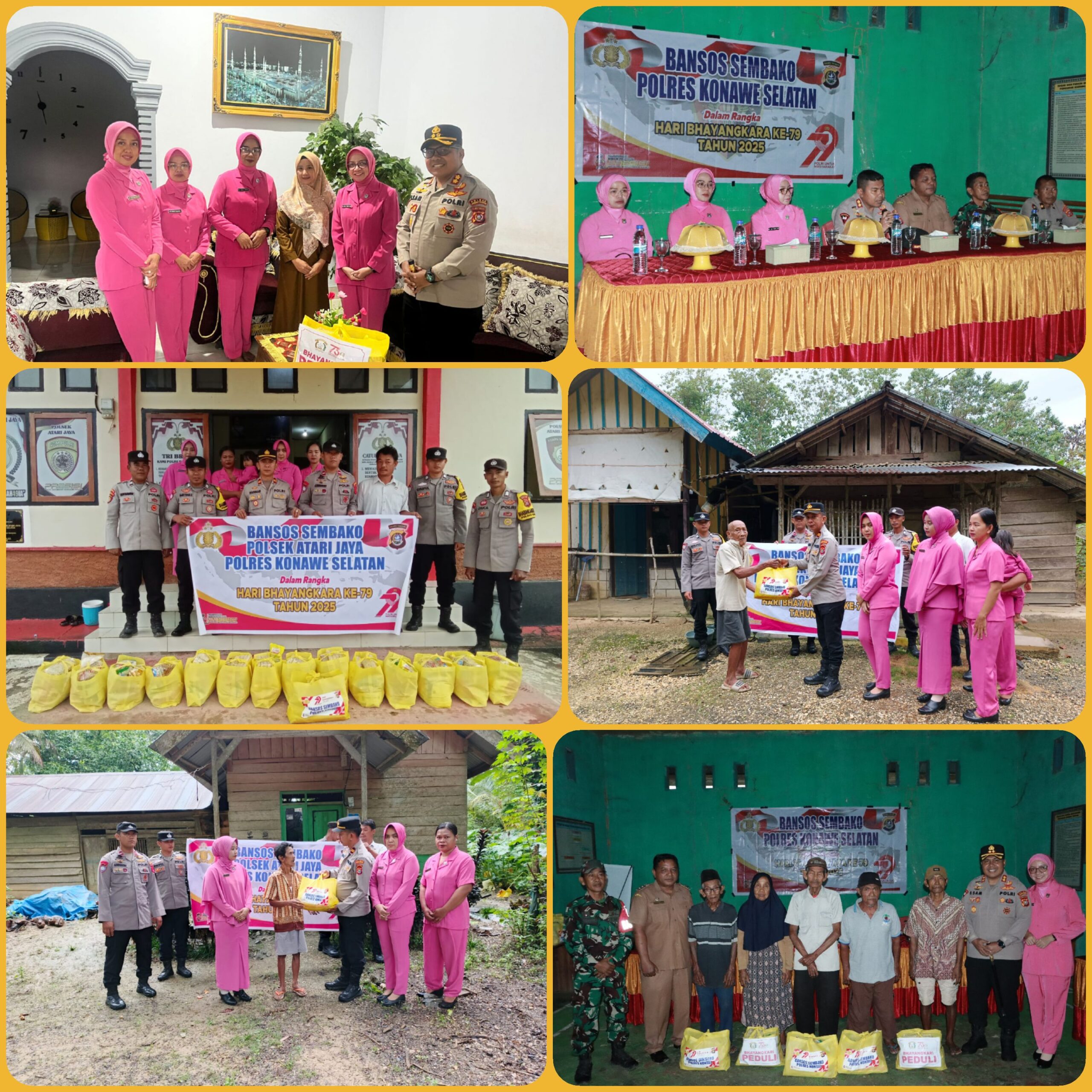Kapolres Konawe Selatan, AKBP Febry Sam, S.I.K., M.Si, pemberian bantuan simbolis kepada masyarakat lanjut usia (Lansia) yang kurang mampu dan Purnawirawan Polri serta Warakawuri, berupa bingkisan sebanyak 670 paket sembako di Wilayah Hukum Polres Konawe Selatan.