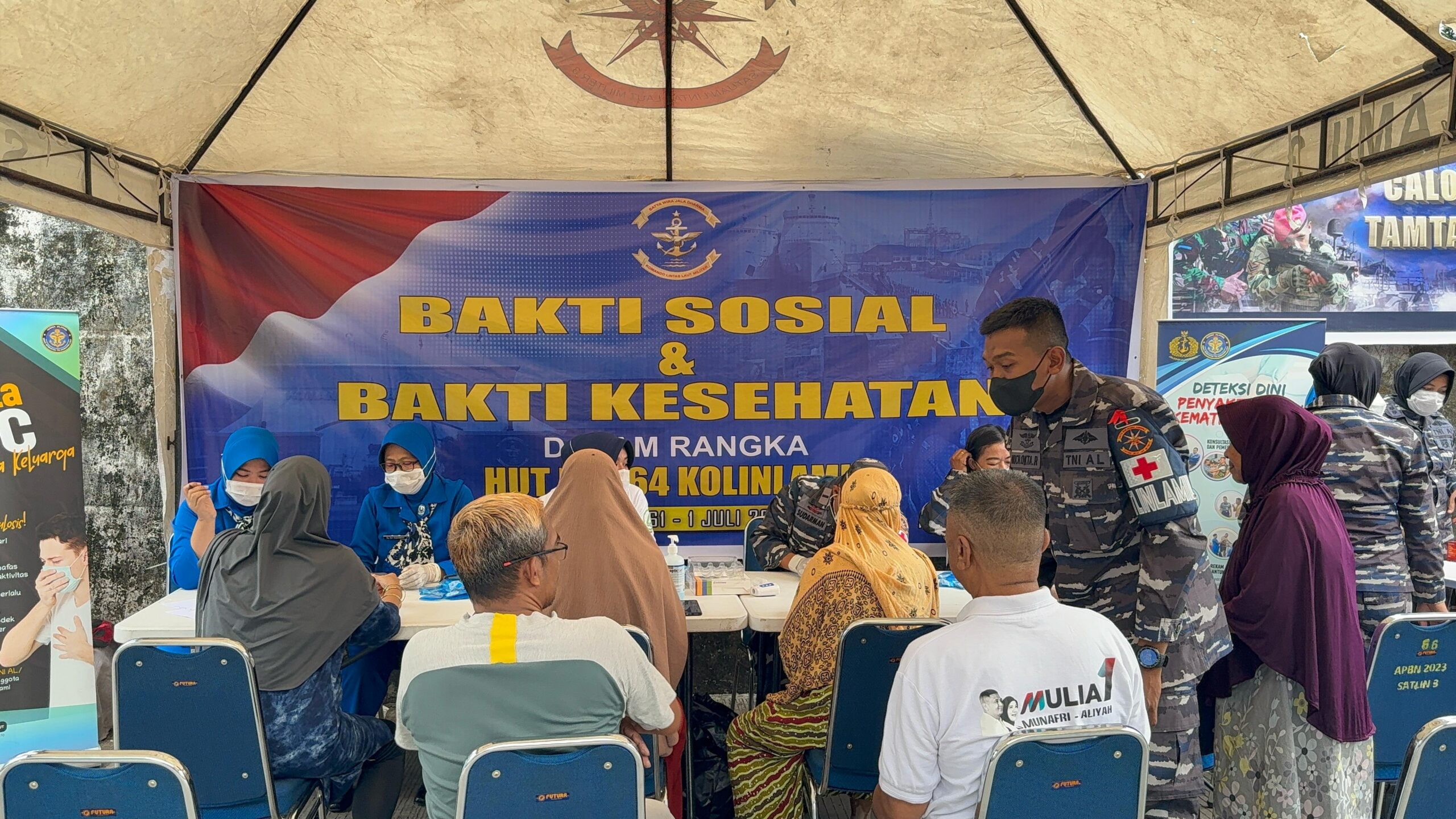 Jelitapos.com Makassar — Prajurit Satuan Lintas Laut Militer (Satlinlamil) 3 dan Anggota Cabang 4 Gabungan Jalasenastri Kolinlamil melaksanakan kegiatan Bakti Sosial (Baksos) pembersihan lingkungan dan Bakti Kesehatan (Bakkes) pemeriksaan kesehatan umum, bertempat di Jalan Teuku Umar 12, Kelurahan Kaluku Bodoa, Kecamatan Tallo, Kota Makassar, Selasa (24/06/2025).
