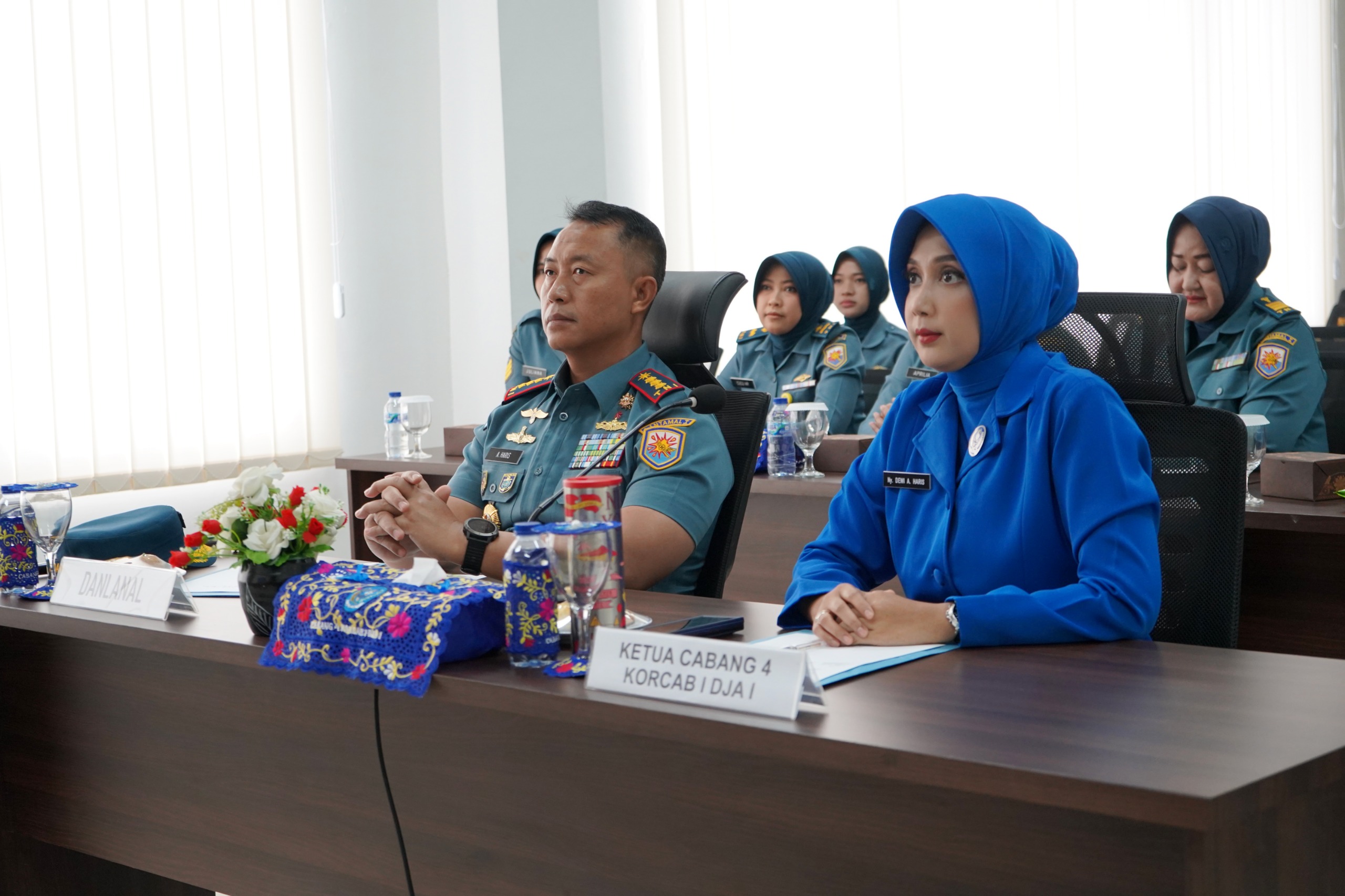 Jelitapos.com Dumai — Bertempat di Mako Lanal Dumai, Jalan Yos Soedarso No. 01 kota Dumai, Komandan Pangkalan TNI Angkatan Laut Dumai Kolonel Laut (P) Abdul Haris, S.E., M.M.D.S., didampingi oleh Ketua Jalasenastri Cabang 4 Korcab I DJA I Ny. Dewi Abdul Haris beserta Prajurit Kowal Lanal Dumai mengikuti giat Vicon dalam rangka menerima pembekalan Panglima Koarmada RI, Senin (23/6/2025).
