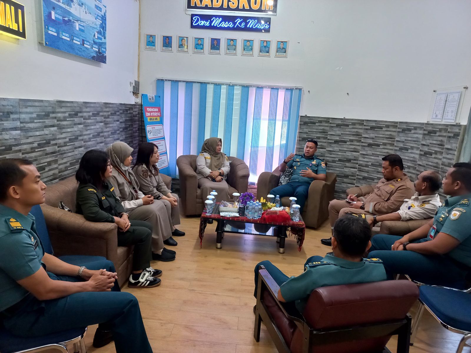 Kadiskum Lantamal I Didampingi para Perwira Diskum Lantamal I menyambut dengan hangat dan penuh kekeluargaan kedatangan rombongan dari Satuan Pelayanan Karantinan Belawan.