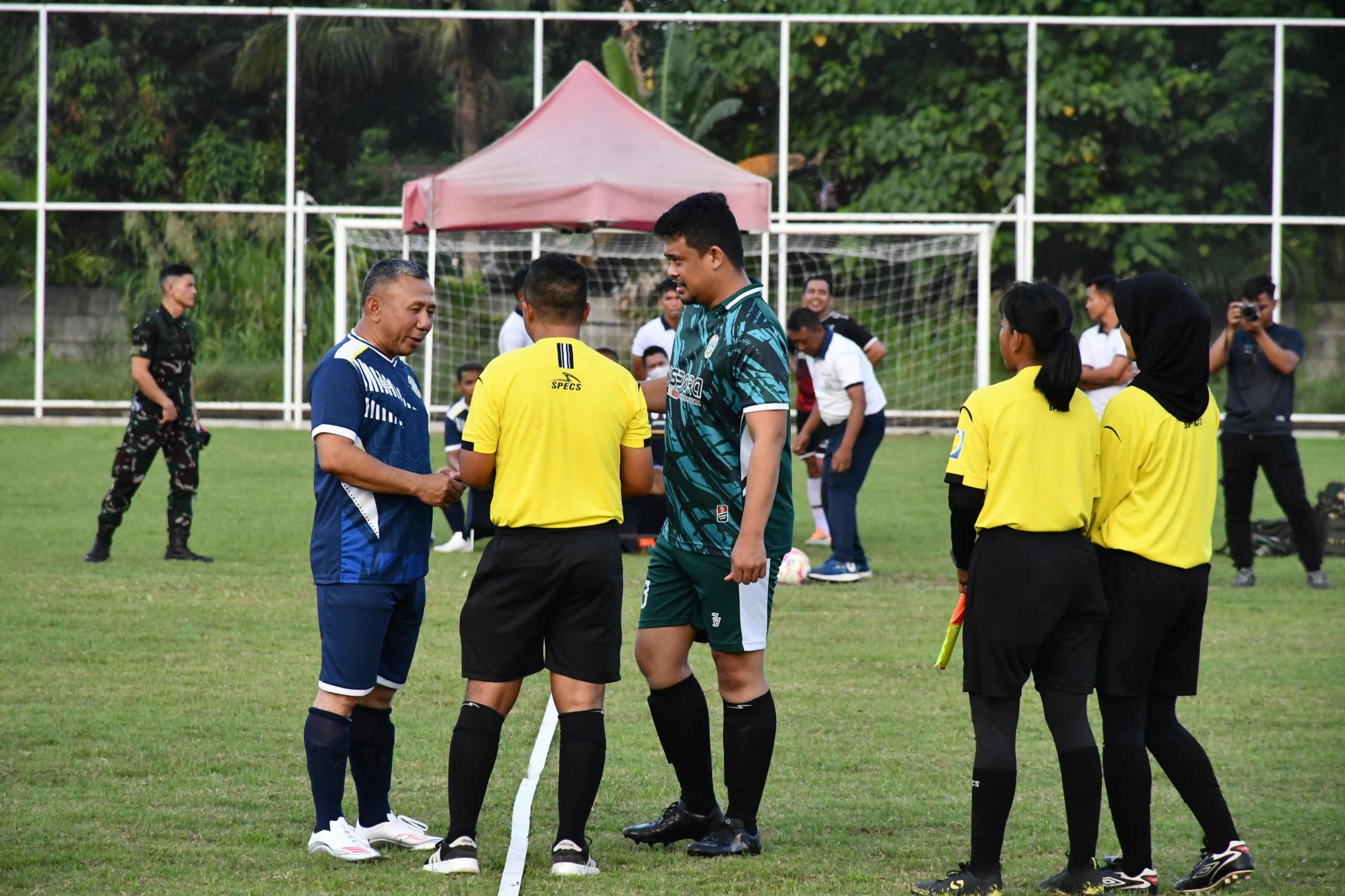 Jelitapos.my.id Belawan — Komandan Pangkalan Utama TNI Angkatan Laut I (Danlantamal I) Brigjen TNI (Mar) Jasiman Purba, S. E., CHRMP., mengikuti pertandingan sepakbola persahabatan bersama Gubernur Sumatera Utara M. Bobby Afif Nasution, S.E., M.M., bertempat di Lapangan Sepak Bola Komplek TNI AL Barakuda, Tanjung Mulia, Medan, Sumatera Utara, Rabu (16/07/2025).