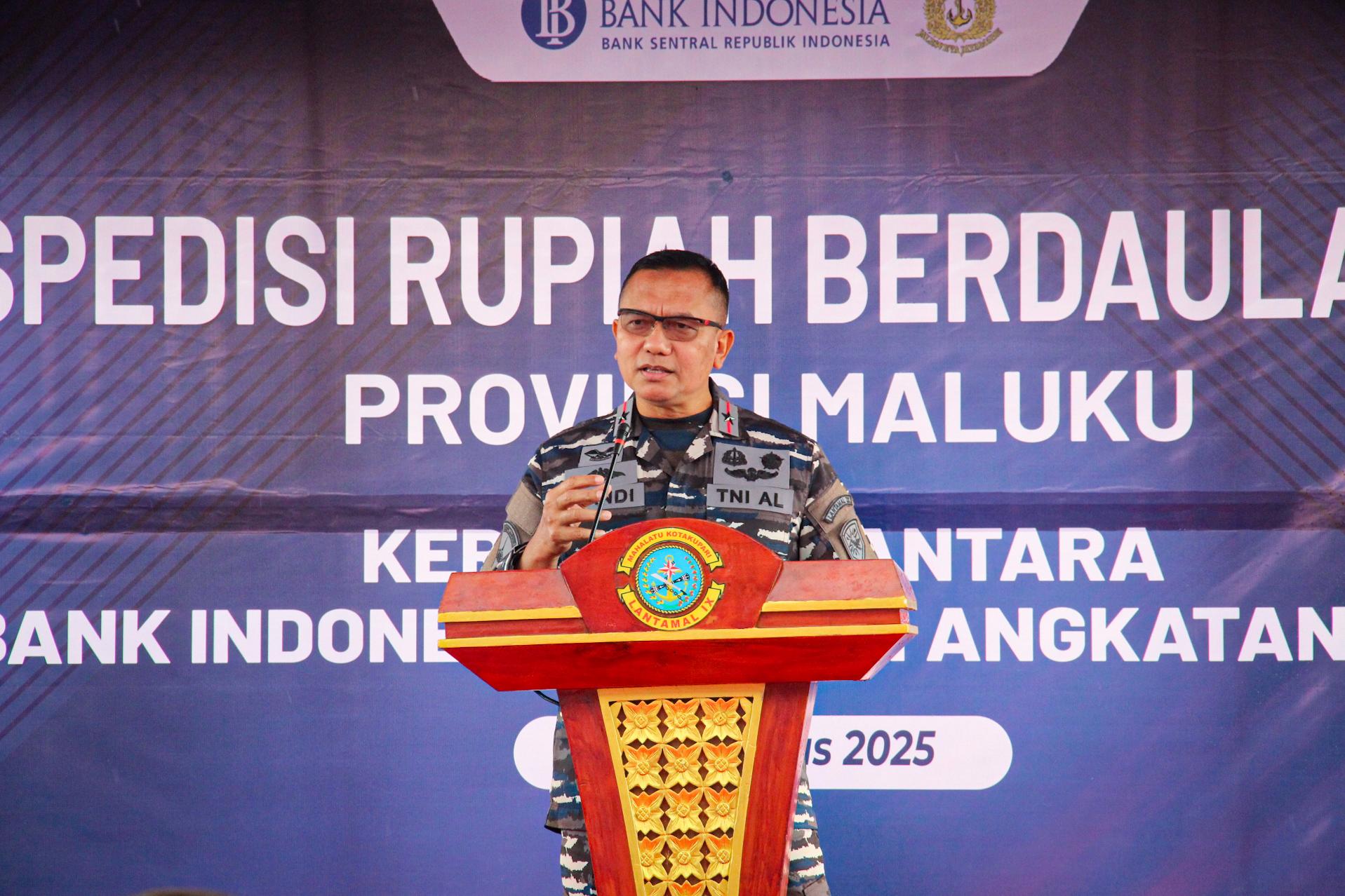 Dalam sambutannya, Brigjen TNI (Mar) Suwandi menyampaikan “Saya sangat mengapresiasi dan mendukung Bank Indonesia Provinsi Maluku dengan kepercayaannya kepada TNI Angkatan Laut. Kami harap, kegiatan Ekspedisi Rupiah Berdaulat 2025 ini berdampak baik dan dapat dirasakan manfaatnya oleh masyarakat di Pulau tersebut.”