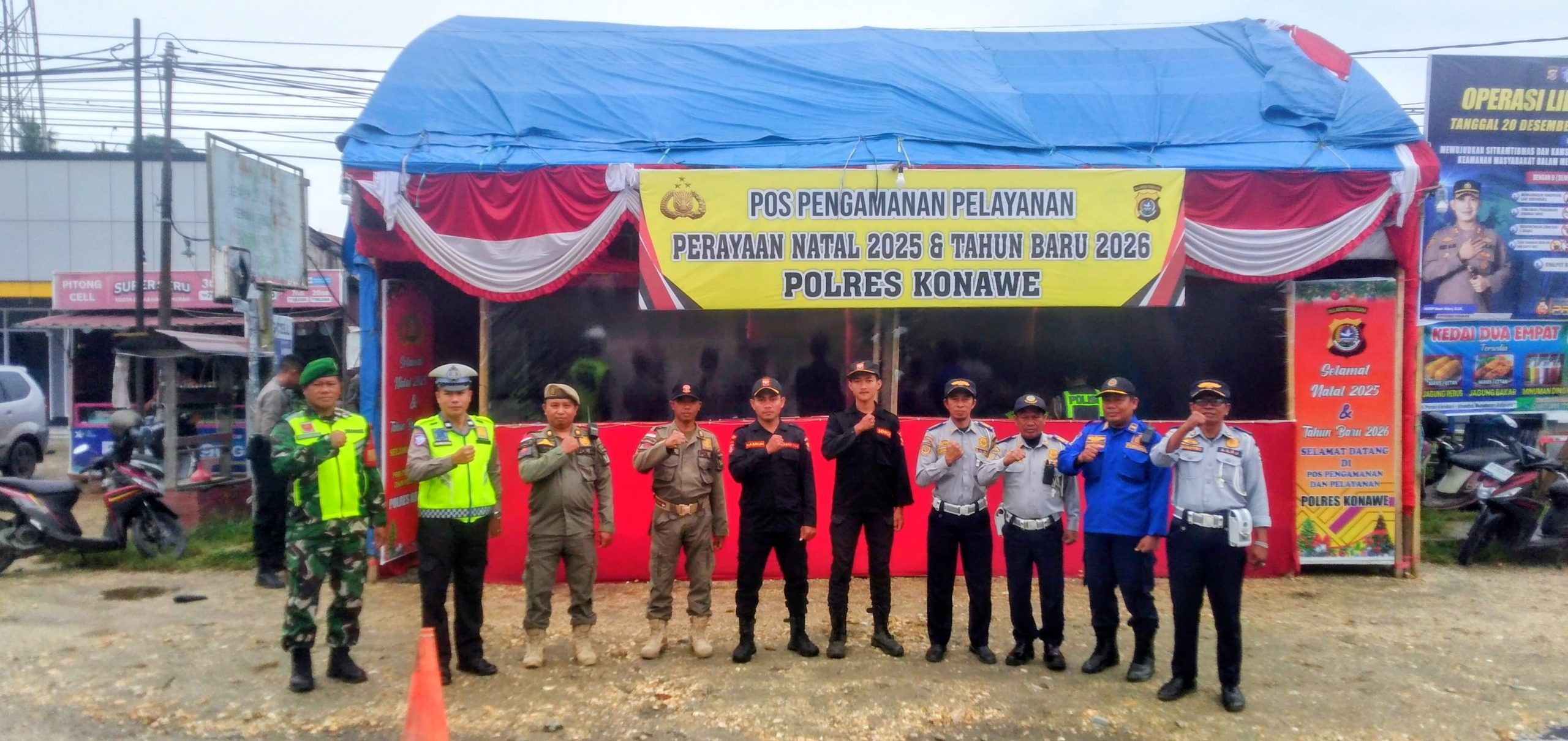 Jelitapos.my.id – Kabupaten Konawe – Dalam rangka memberikan rasa aman dan nyaman kepada masyarakat selama perayaan Natal 2025 dan Tahun Baru 2026, Polres Konawe melalui Pos Pengamanan (Pospam) Nataru menyiagakan personel secara optimal di titik-titik strategis wilayah hukum Polres Konawe, Provinsi Sulawesi Tenggara, pada Sabtu (27/12/2025) pagi.