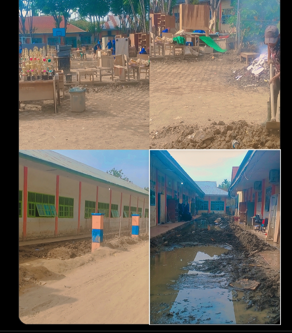 Jelitapos.My.Id ll Bireun,Aceh. ~ Memasuki 56 hari pasca bencana banjir yang meluluh lantakkan Aceh,termasuk Kabupaten Bireun.Sekolah SMKN 1 Peusangan sampai hari ini masih berjibaku membersihkan sisa lumpur- lumpur dan peralatan sekolah,bangku,kursi,buku di lokal- lokal dan ruang belajar dan mengajar lainnya dalam ruang dan di halaman sekolah, oleh TNI,guru serta anak didik siswa/wi disela belajar dan mengajar yang sudah aktif kembali. Kamis(22/01-2026)