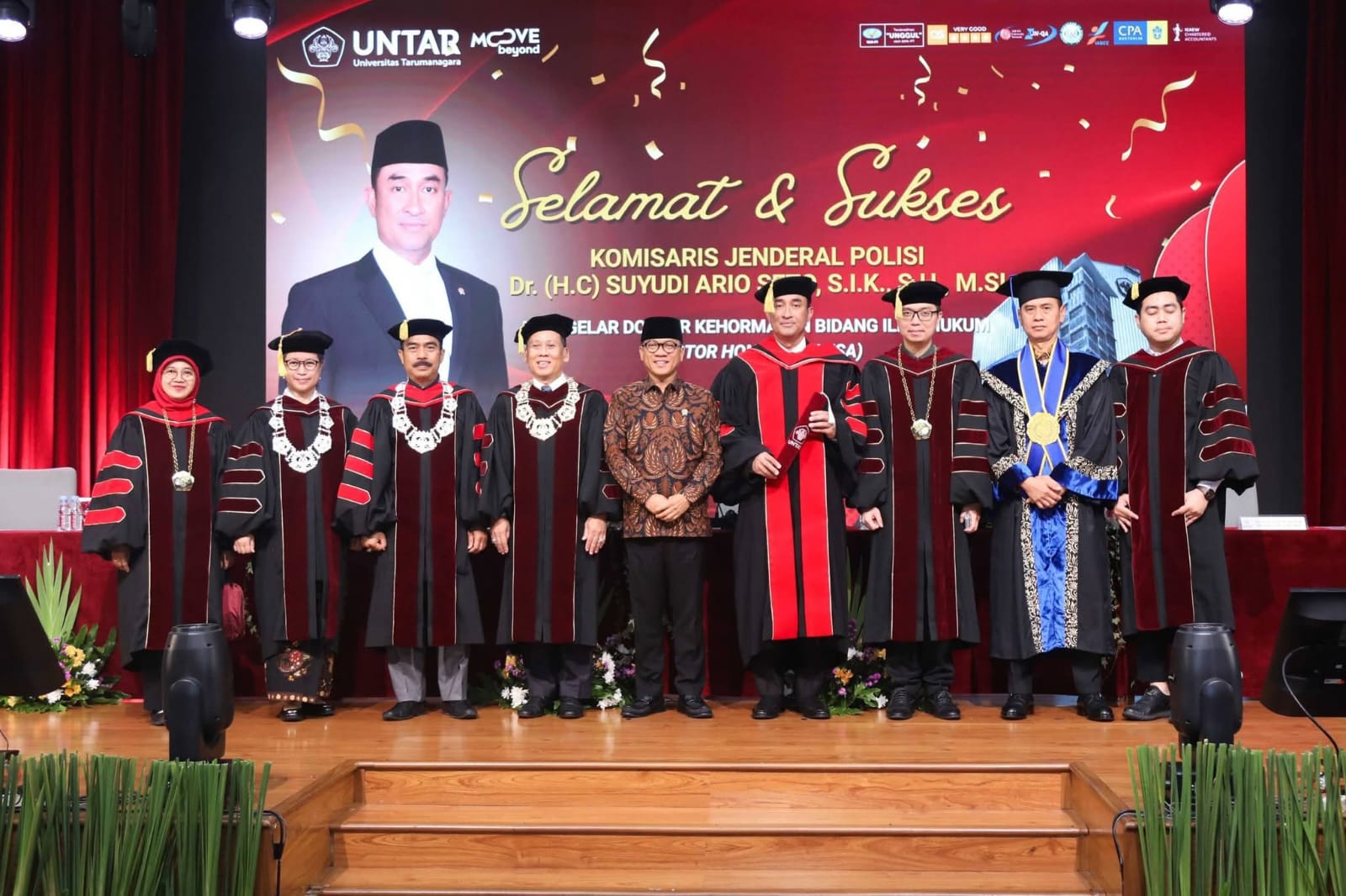 JelitaPos.My.Id- Sidang terbuka Senat Universitas Tarumanagara yang digelar pada Sabtu (31/1), di Auditorium Universitas Tarumanagara, Jakarta Barat, secara resmi mengukuhkan Kepala BNN RI, Komjen Pol Suyudi Ario Seto, S.I.K., S.H., M.Si., dalam gelar Doktor Kehormatan (Doctor Honoris Causa) Bidang Ilmu Hukum.
