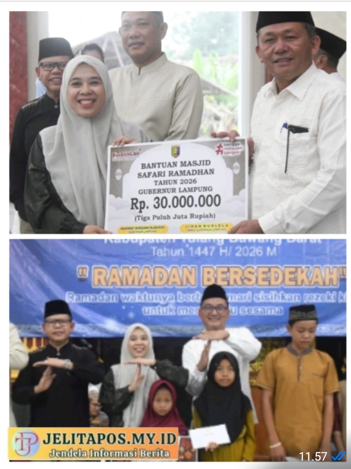 JELITAPOS.WEB.ID– Tulang Bawang Barat Pemerintah Provinsi Lampung melaksanakan kegiatan Safari Ramadan di Masjid Al Amin Pulung Kencana, dengan mengusung tema “Ramadan Bersedekah” sebagai momentum mempererat silaturahmi antara pemerintah daerah dan masyarakat serta meningkatkan kepedulian sosial di bulan suci Ramadan, Senin (23/2/2026).