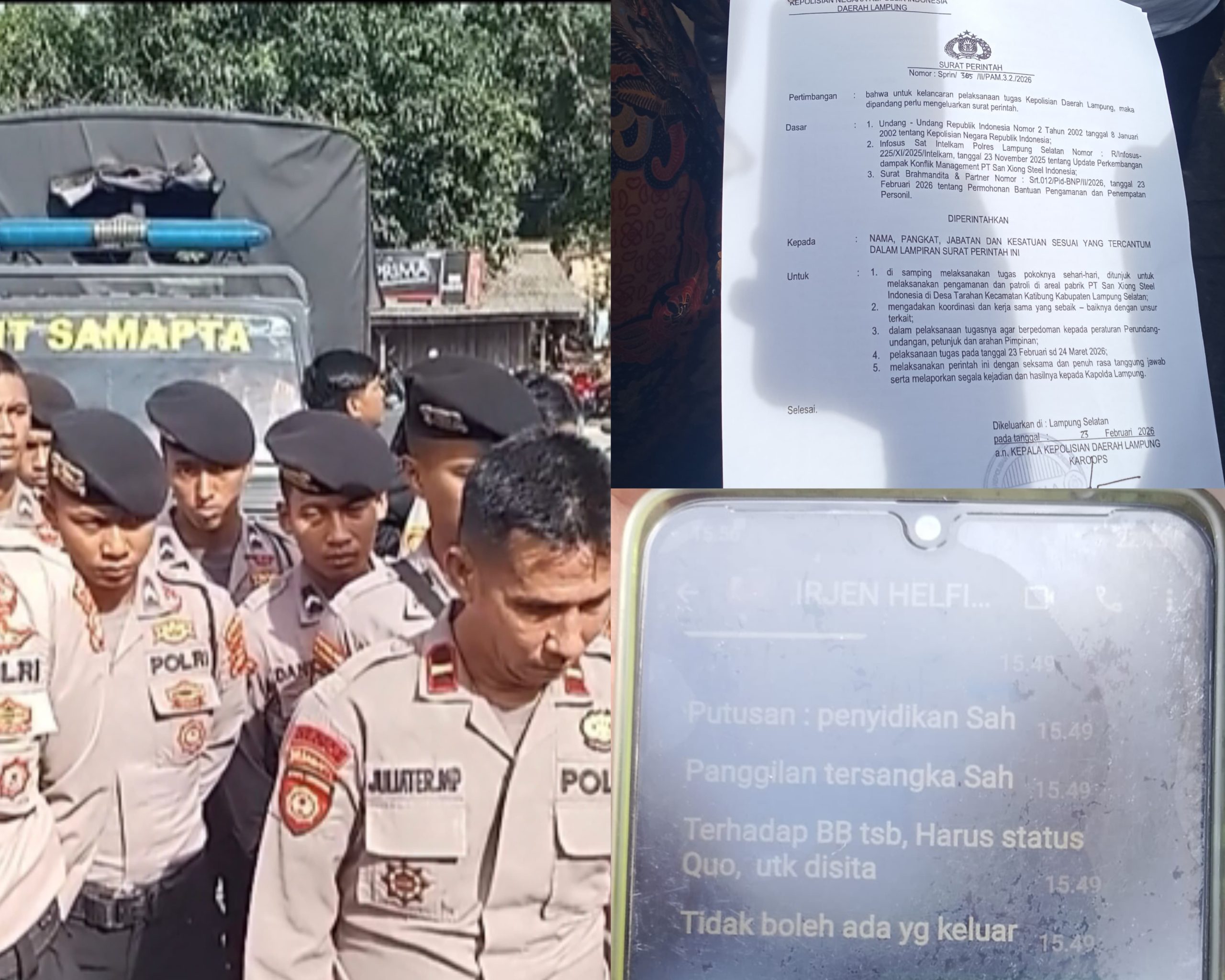 Jelitapos.my.id -Lampung Selatan–Proses penjualan besi behel hasil Produksi milik PT San Xiong Steel Indonesia yang berlokasi di Desa Tarahan, Kecamatan Katibung Lampung Selatan, di Hadang oleh personil kepolisian Sat SAMAPTA Polda Lampung, menjadi pemicu penundaan pembayaran ratusan buruh. penghadangan proses penjualan diketahui atas perintah dan arahan Kapolda Lampung Irjen.Helfi Asegaf, pada Jum’at 27 Februari 2026.