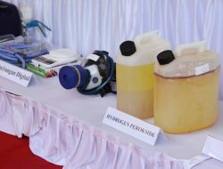 Petugas selanjutnya melakukan penggeledahan terhadap sebuah mobil LCGC dan menemukan sejumlah barang bukti yang diduga digunakan dalam proses produksi mephedrone, seperti jerigen warna putih, jerigen biru berisi ethyl acetate, kotak baju berisi 2 botol kaca happy growth, alkohol 96%, jerigen berisi cairan, botol mineral warna hijau, jerigen “EA”, botol kava metyhlamine, filter, botol kaleng, dan botol “AG+ silver.